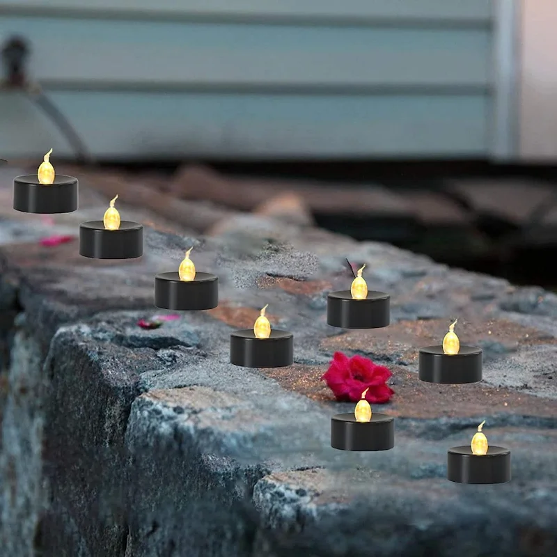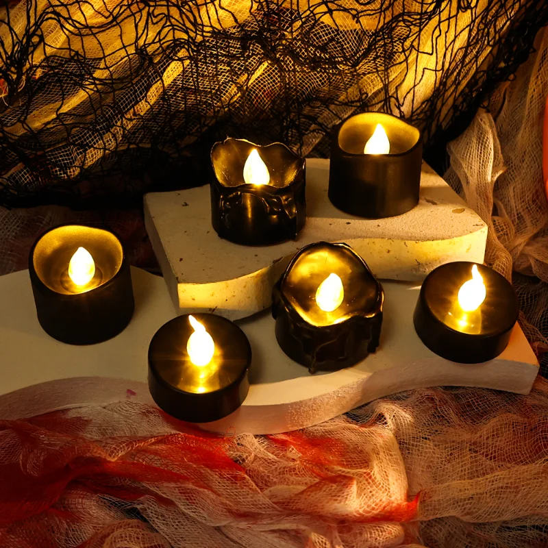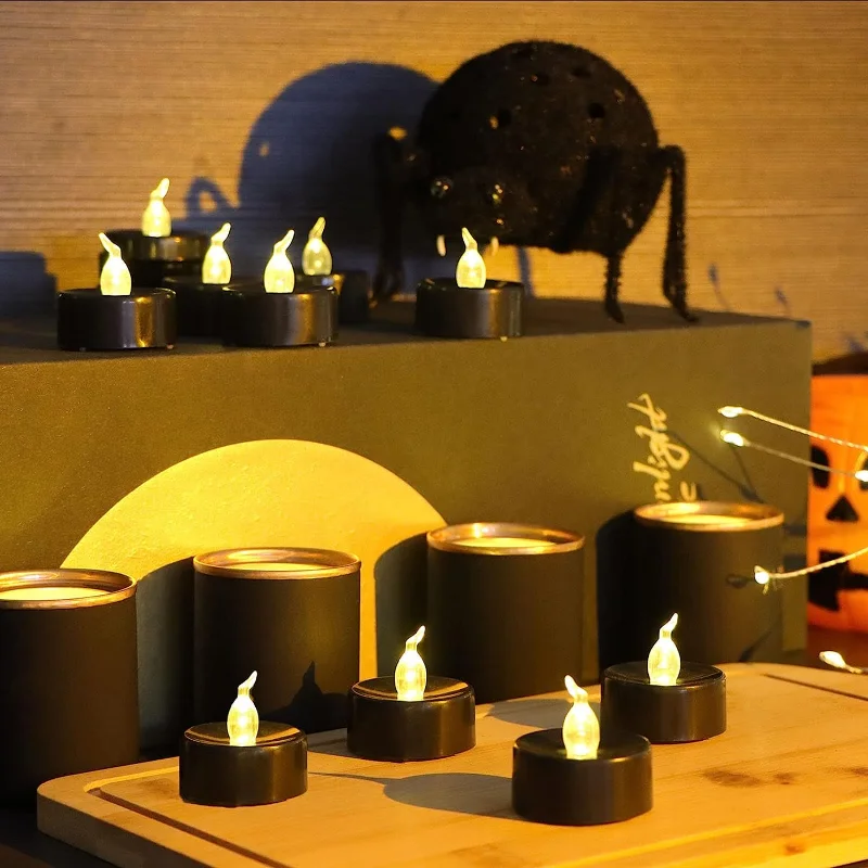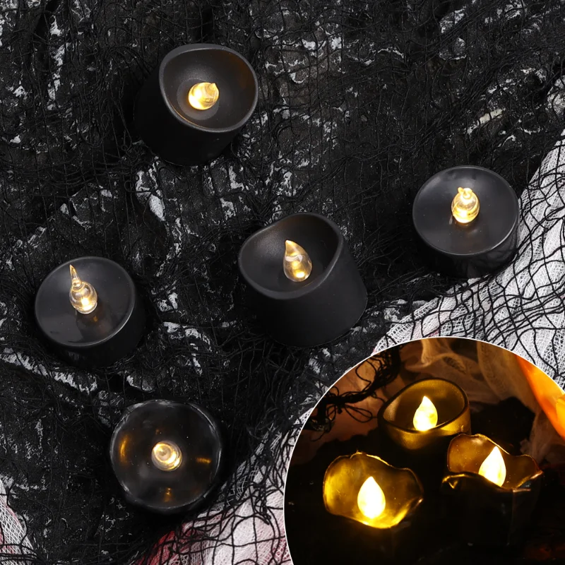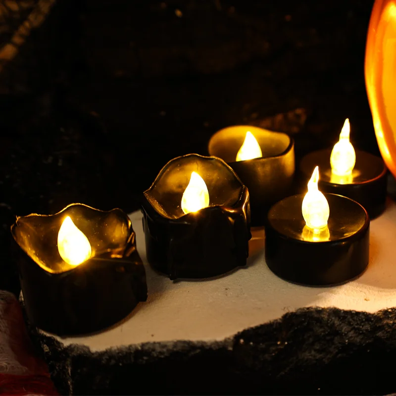 Vela eletrônica led preta operada por bateria piscando tealight sem chama luz de vela falsa decoração de festa de halloween candeeiro de mesa