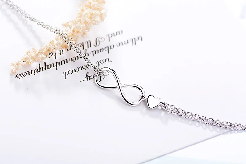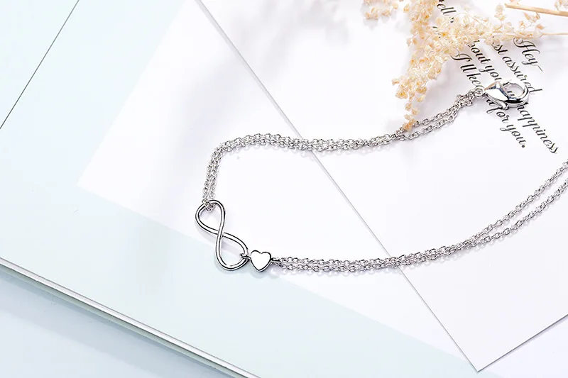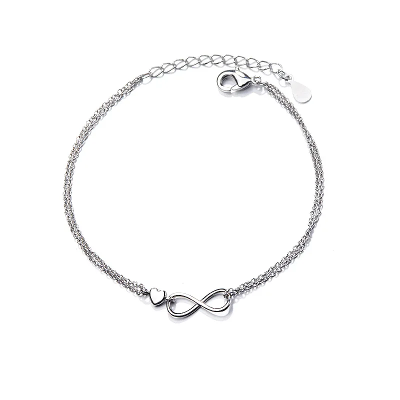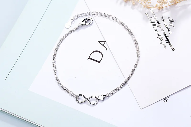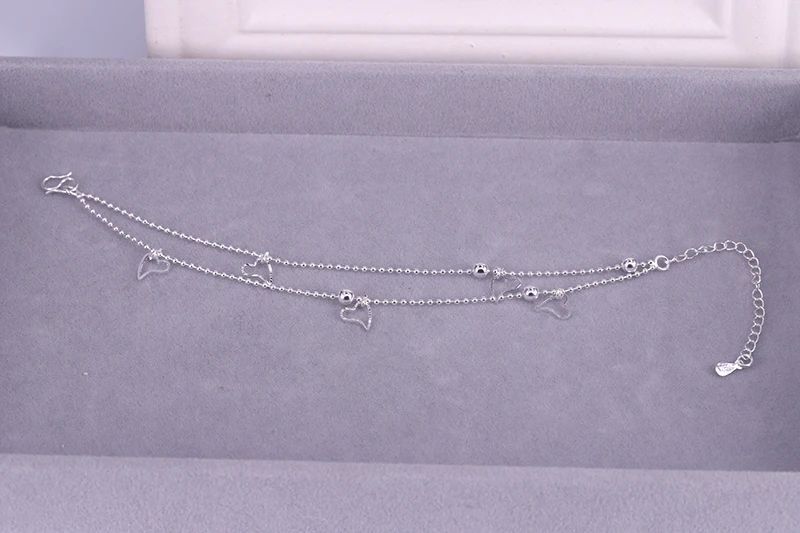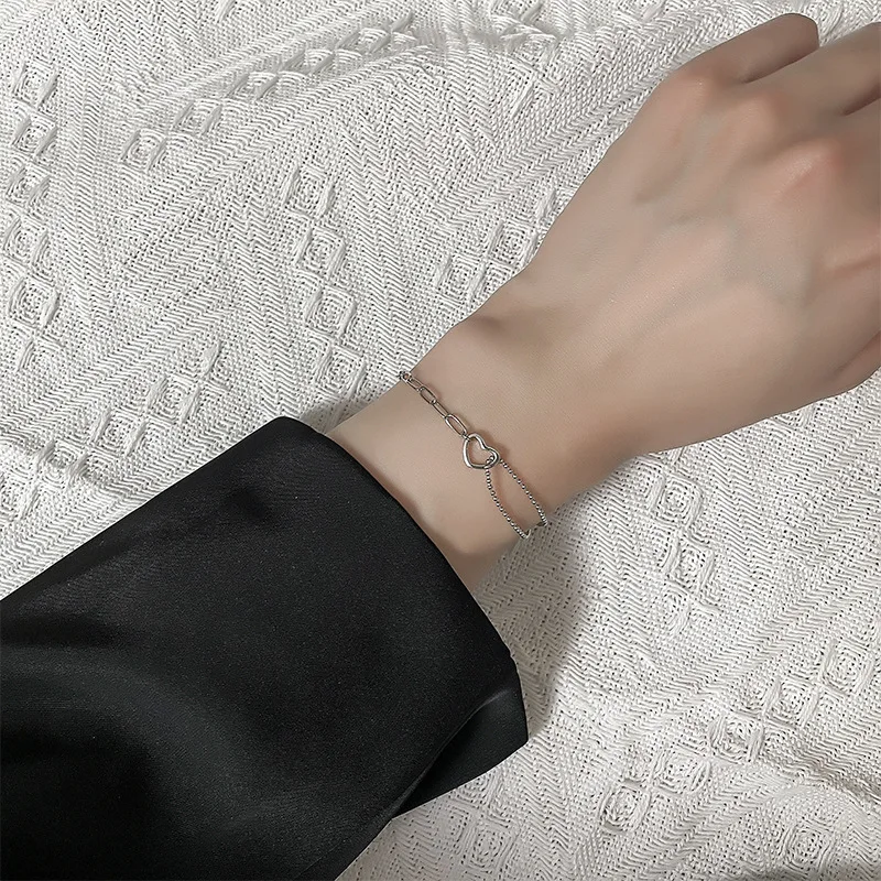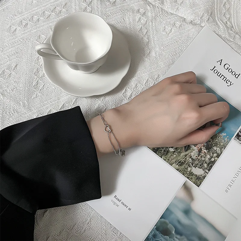 - > Ventfille 925 prata esterlina duplo amor coração oco contas redondas pulseira moda feminina jóias românticas clássico ajustável
