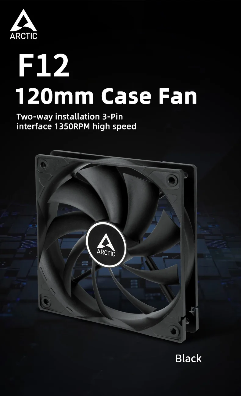 - > Ventilador case padrão ARCTIC F12 preto 120 mm, baixo ruído, motor silencioso, computador, velocidade do ventilador: 550 rpm