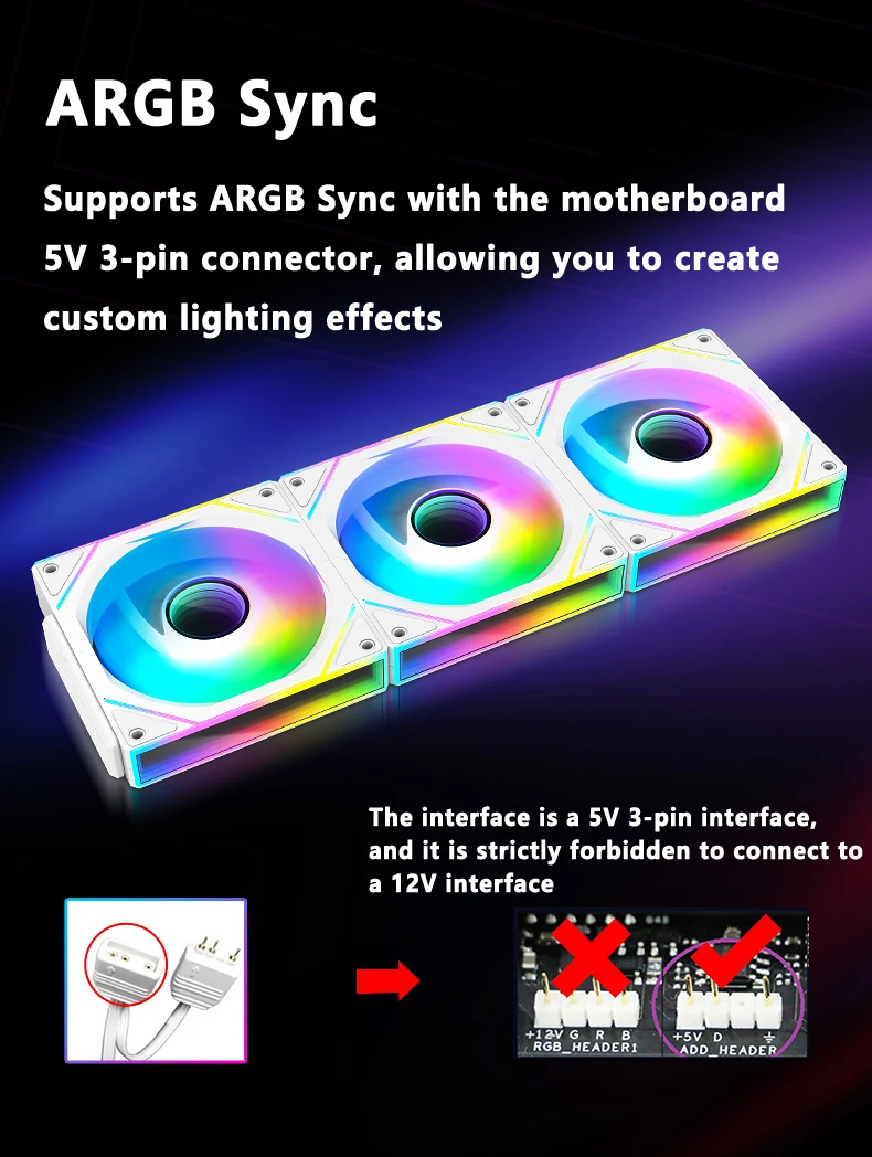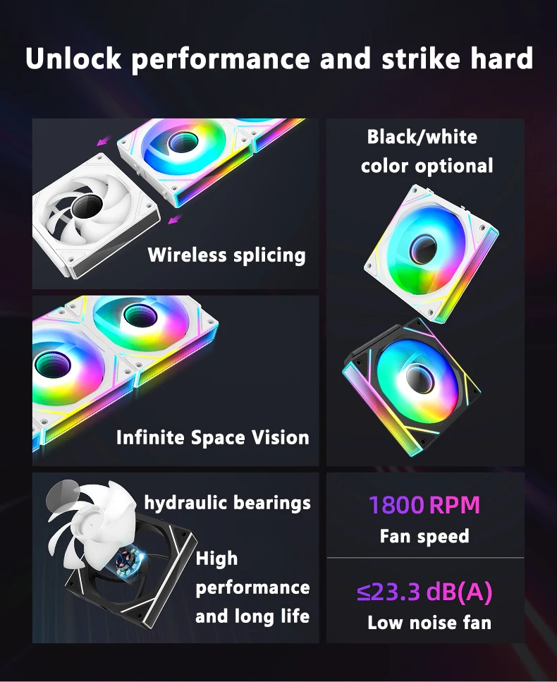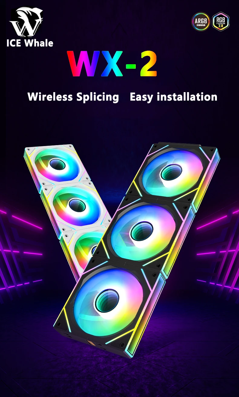- > Ventilador de emenda sem fio ICE Whale WX-2 ARGB 12CM Componente de chassi de resfriamento refrigerado a ar Ventilador de chassi 1800RPM