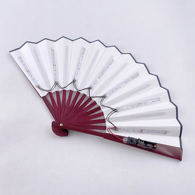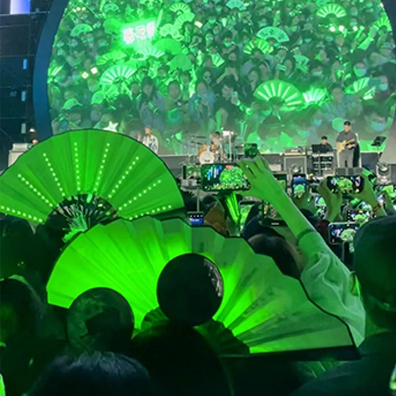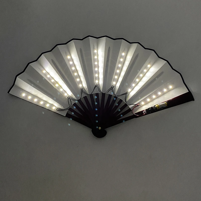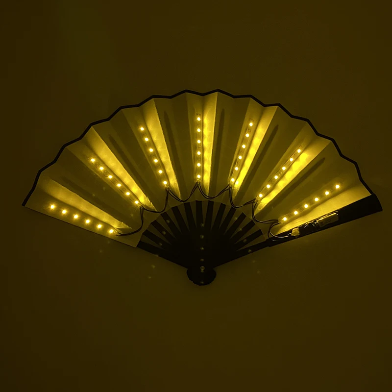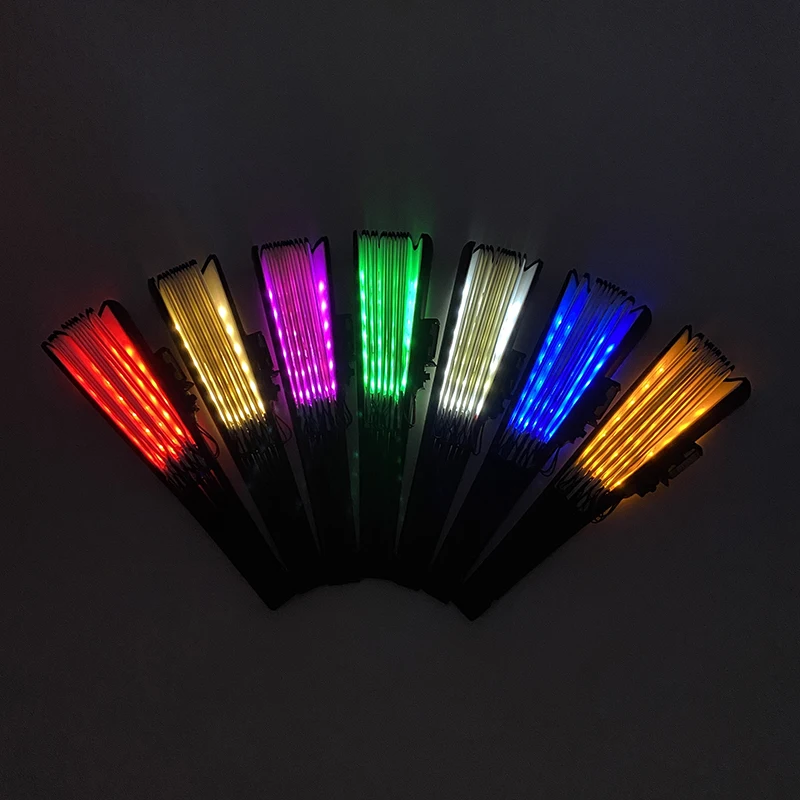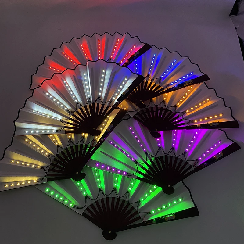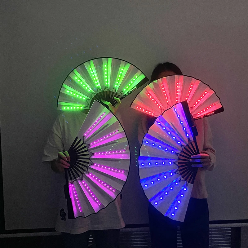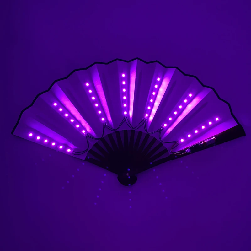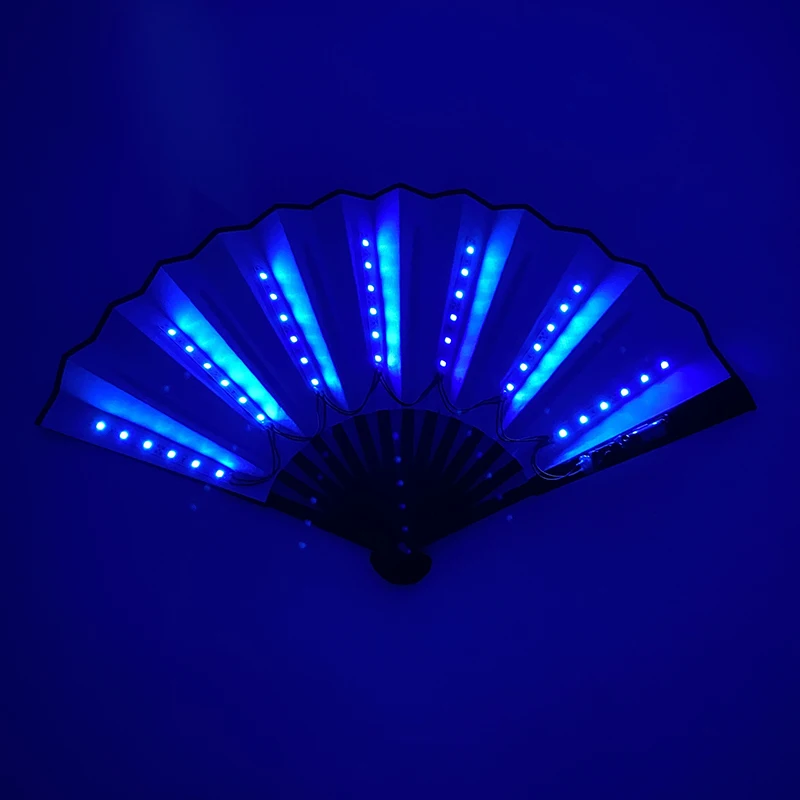 - > Ventilador de mão dobrável com luz LED de 10 polegadas, fluorescente e brilhante, para espetáculos noturnos, palco, performance, adereços, DJ, bar, clube, suprimentos para festas