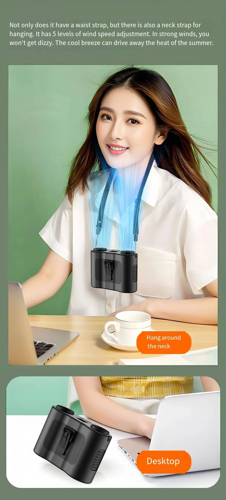 O segundo tipo de ventilador pendurado na cintura