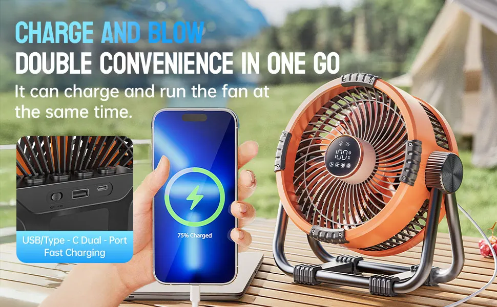 【Grande bateria poli de 10000mAh】55 horas de bateria de longa duração, carregamento rápido de furo duplo USB/Tipo C, carregamento e sopro ao mesmo tempo