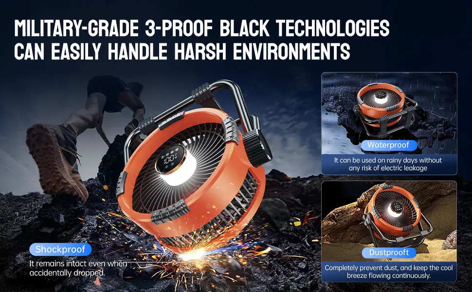 - > Ventilador de teto recarregável multifuncional para acampamento ao ar livre com luz noturna de 3 velocidades e ventilador portátil Power Bank
