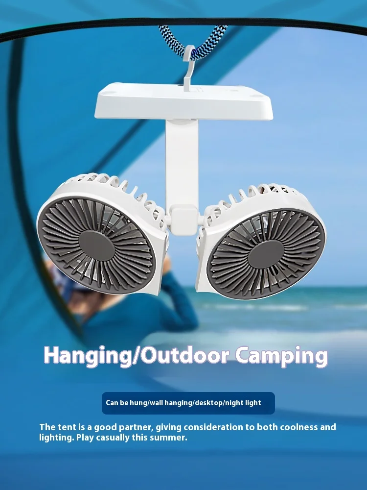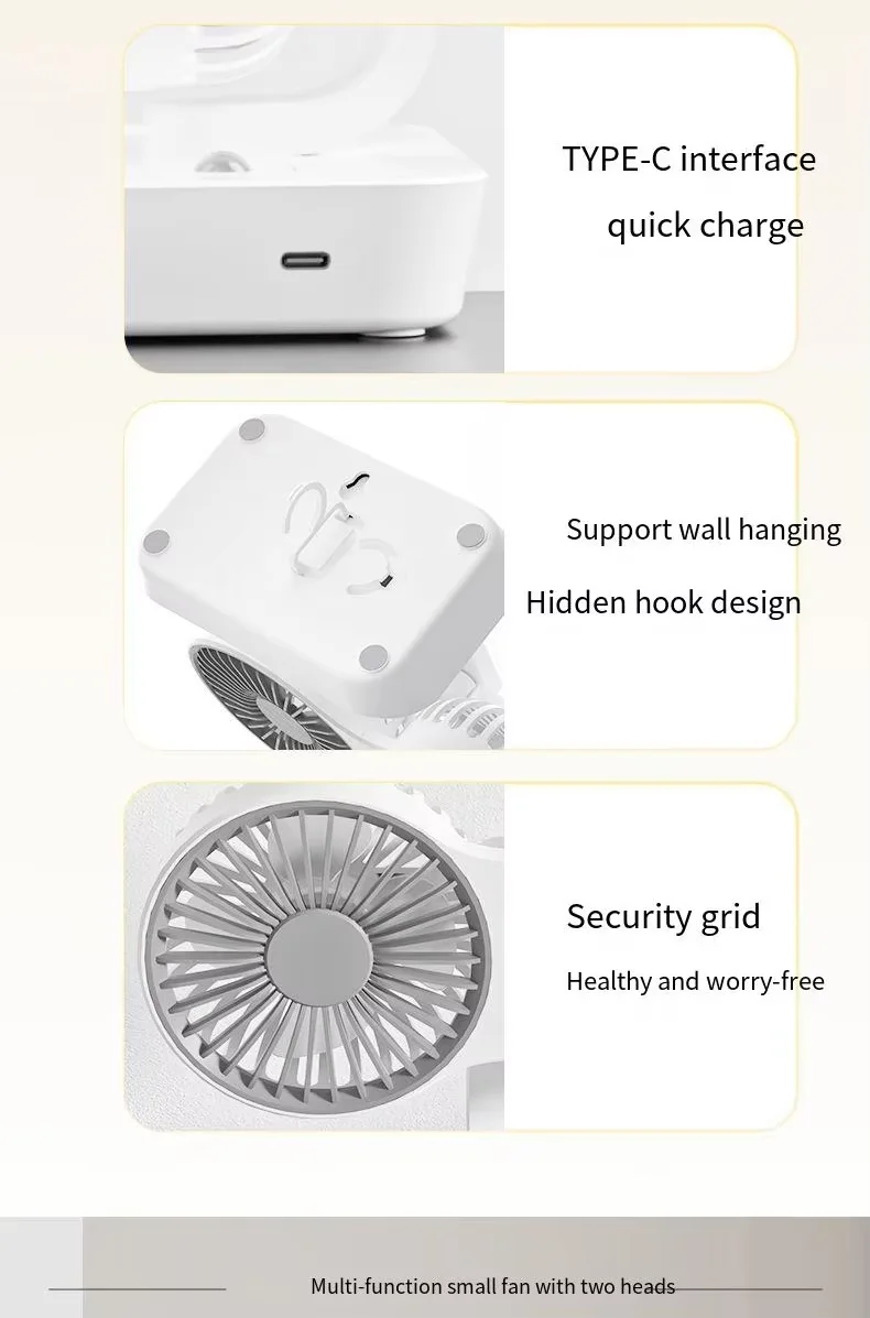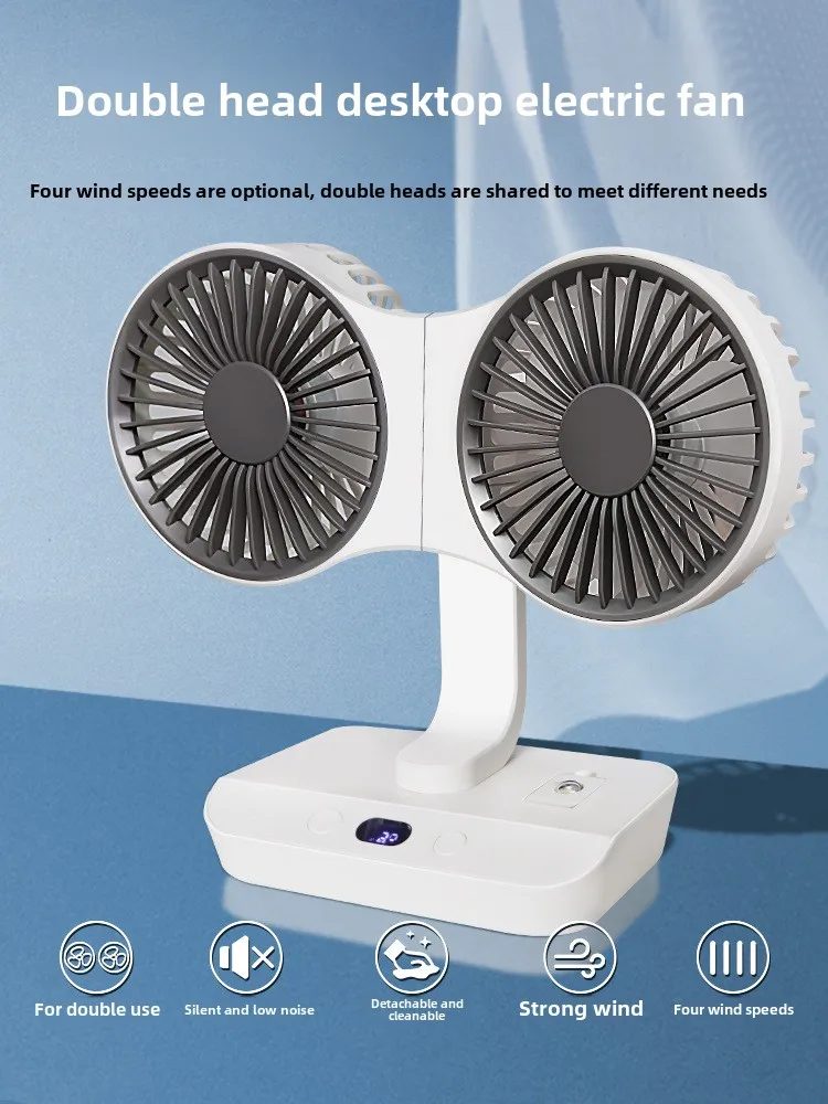 Ventilador Multifunções de Dupla Cabeça, Ajustável, Alta Definição, Display Digital, Luzes Noturnas, Portátil, 4 Engrenagens, Novo, 2024