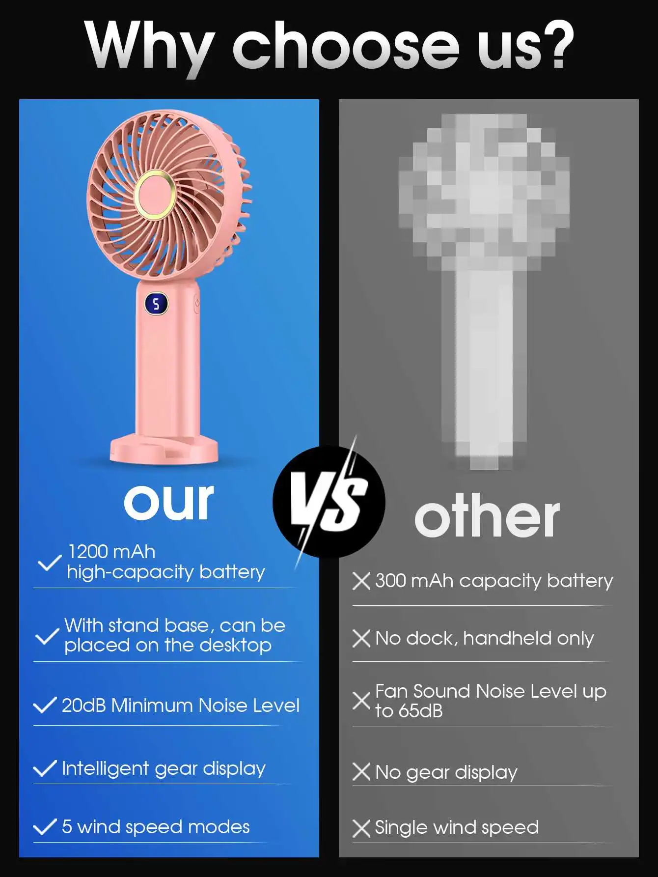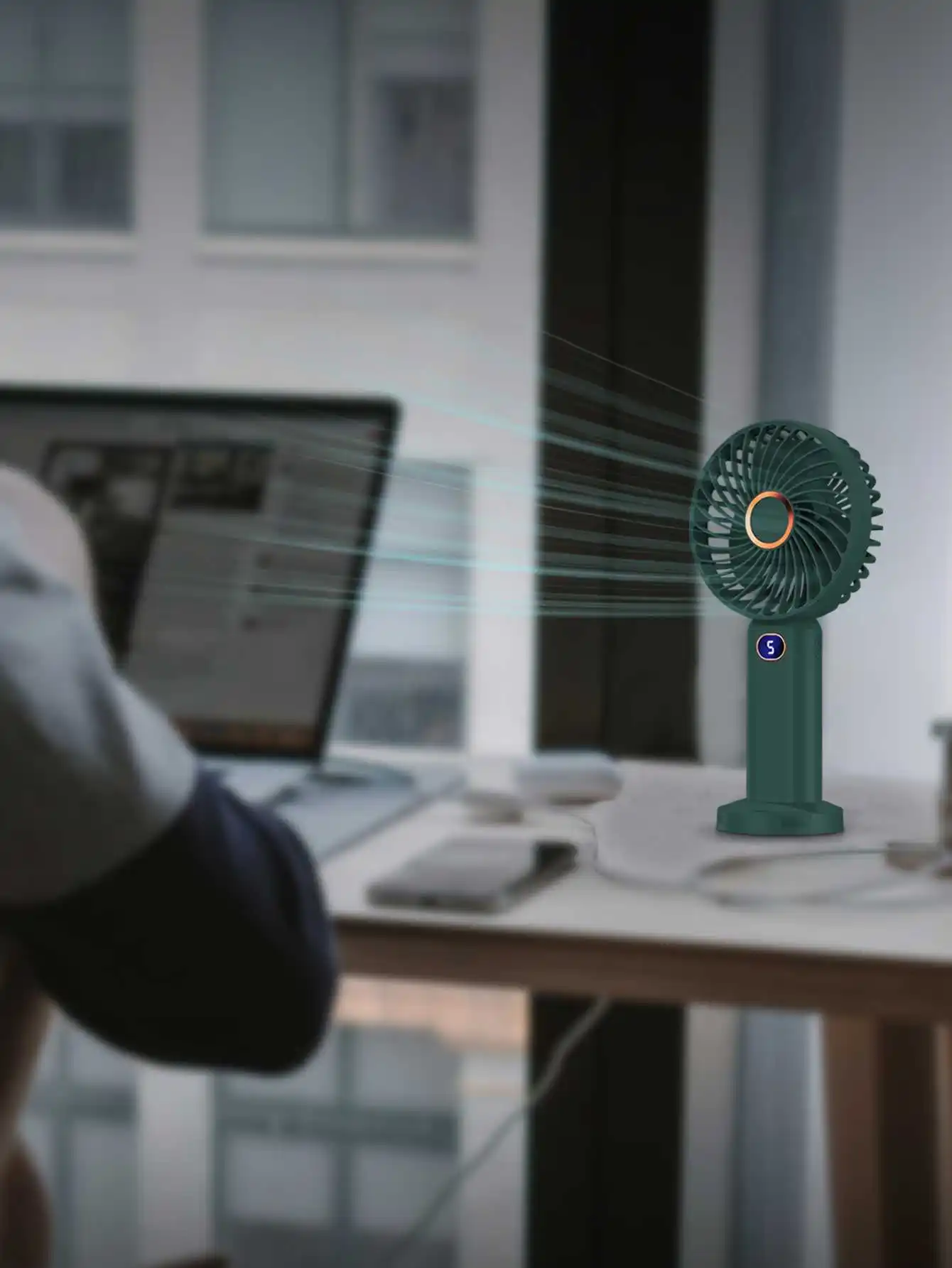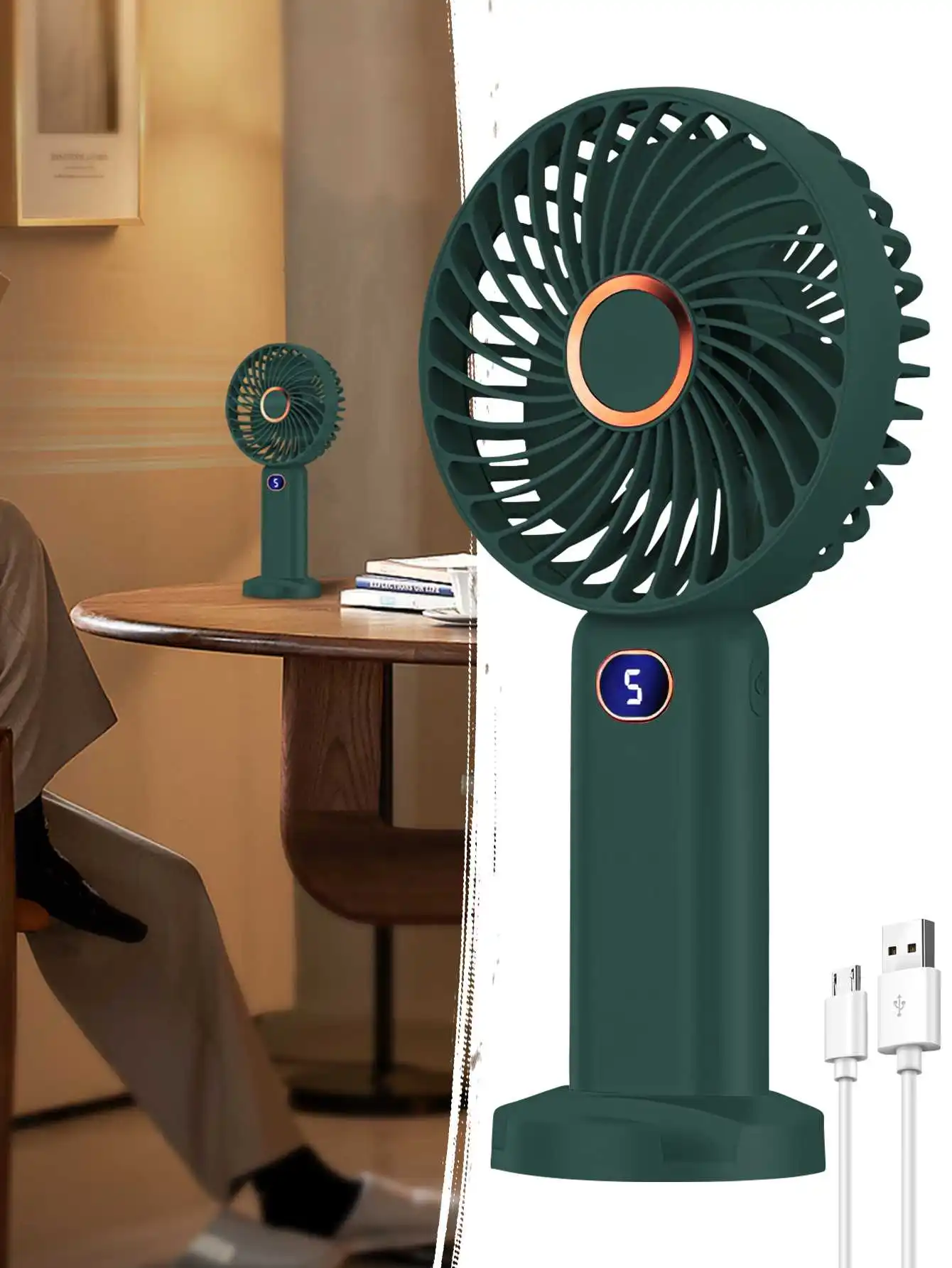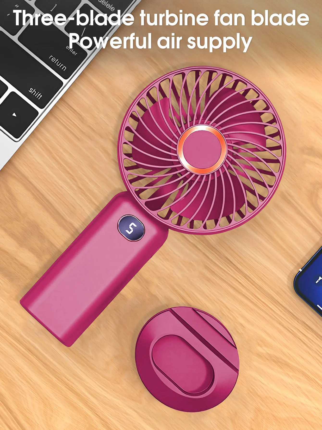 - > Ventilador portátil portátil recarregável usb mini ventilador display digital ajuste de 5 velocidades adequado para viagens ao ar livre escritório casa