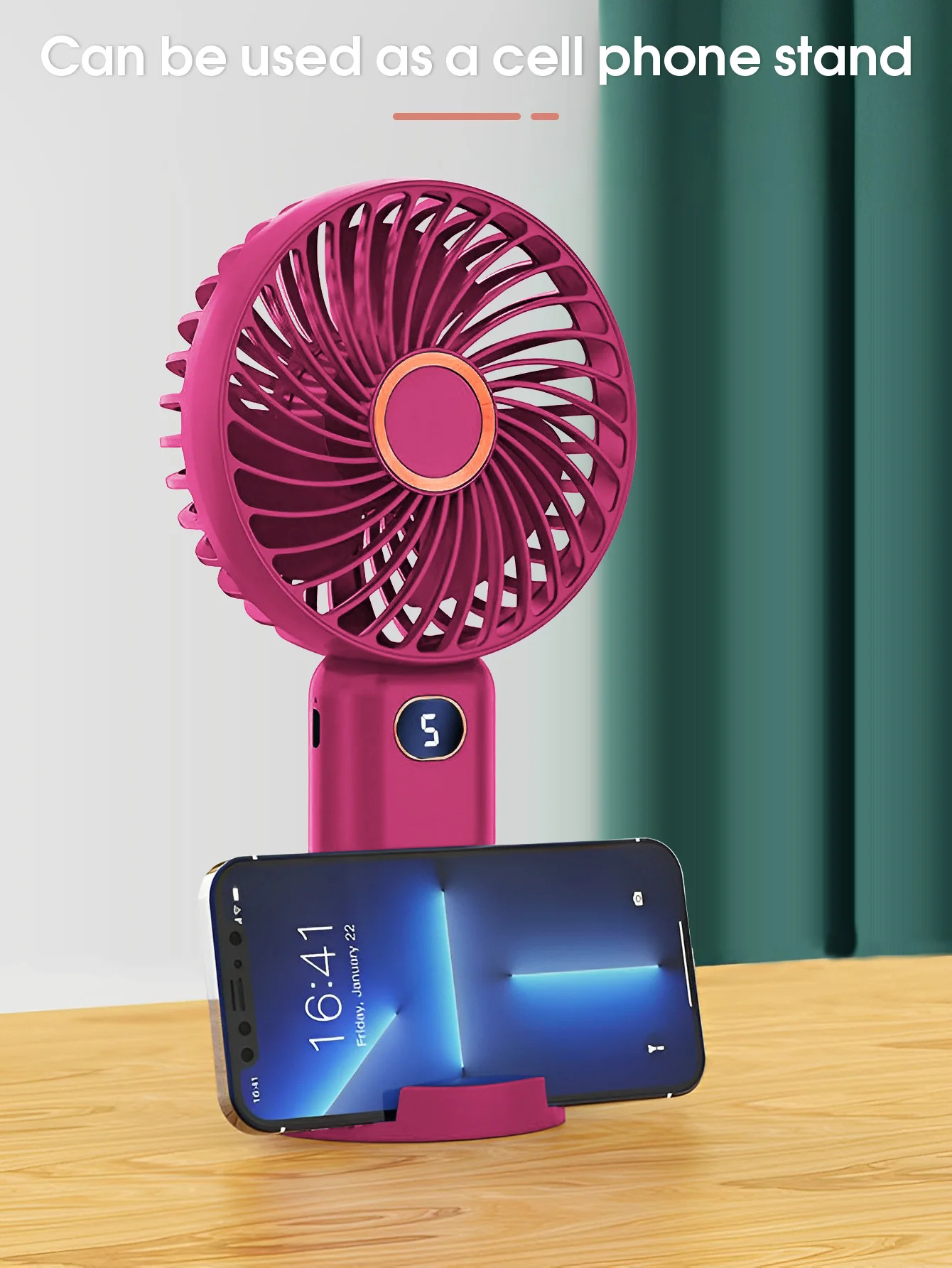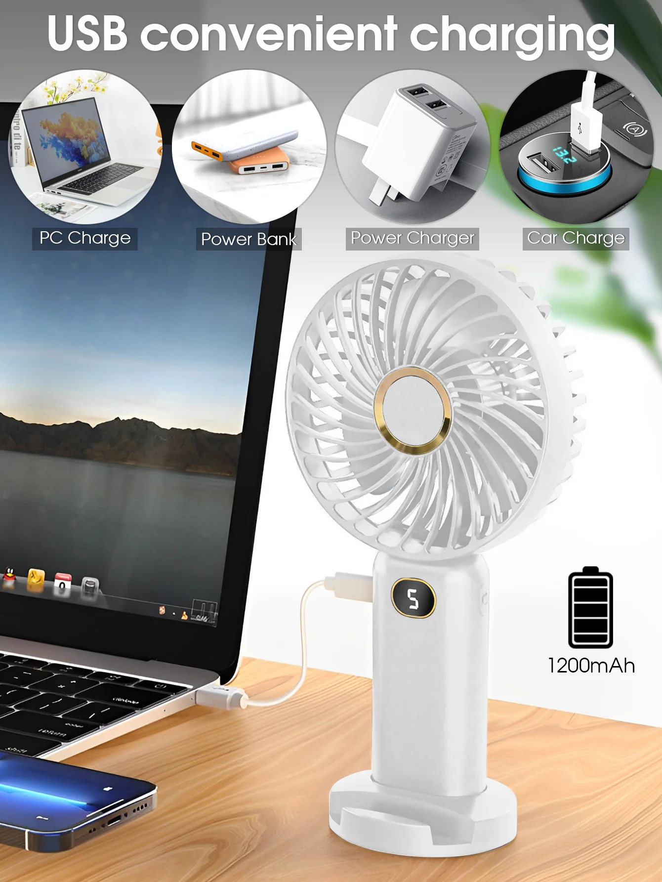 Ventilador portátil portátil recarregável usb mini ventilador display digital ajuste de 5 velocidades adequado para viagens ao ar livre escritório casa