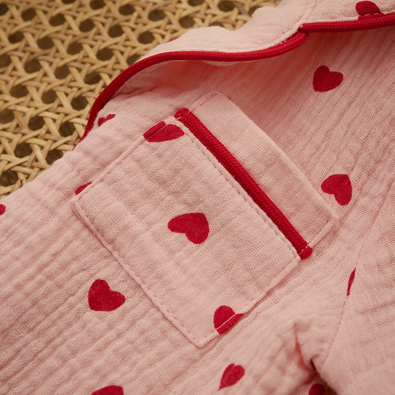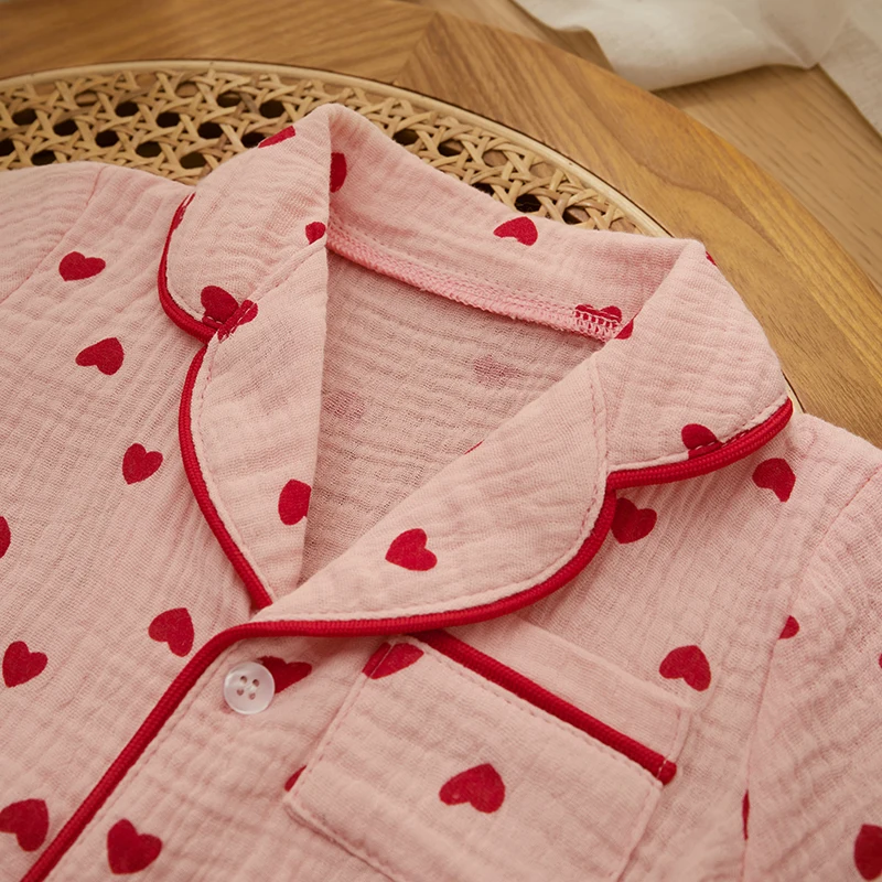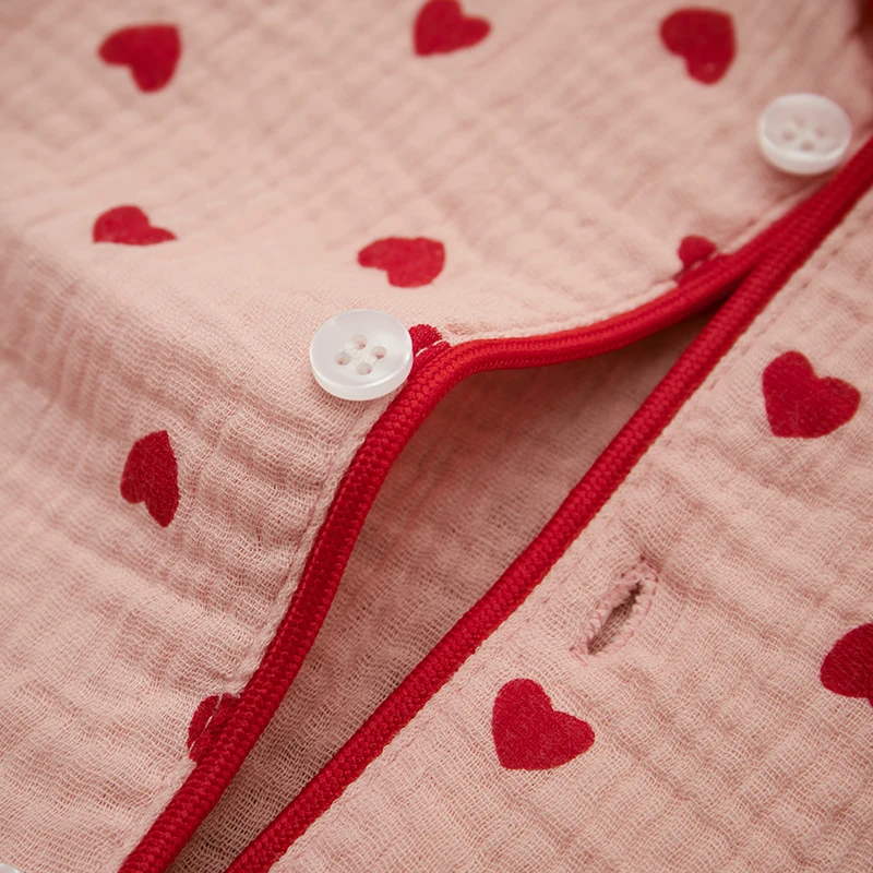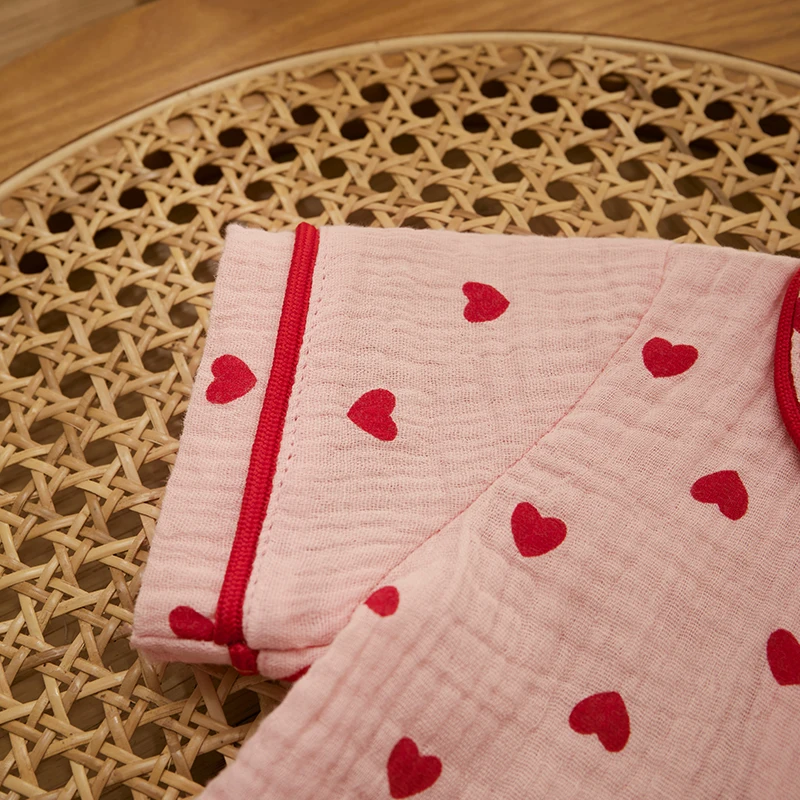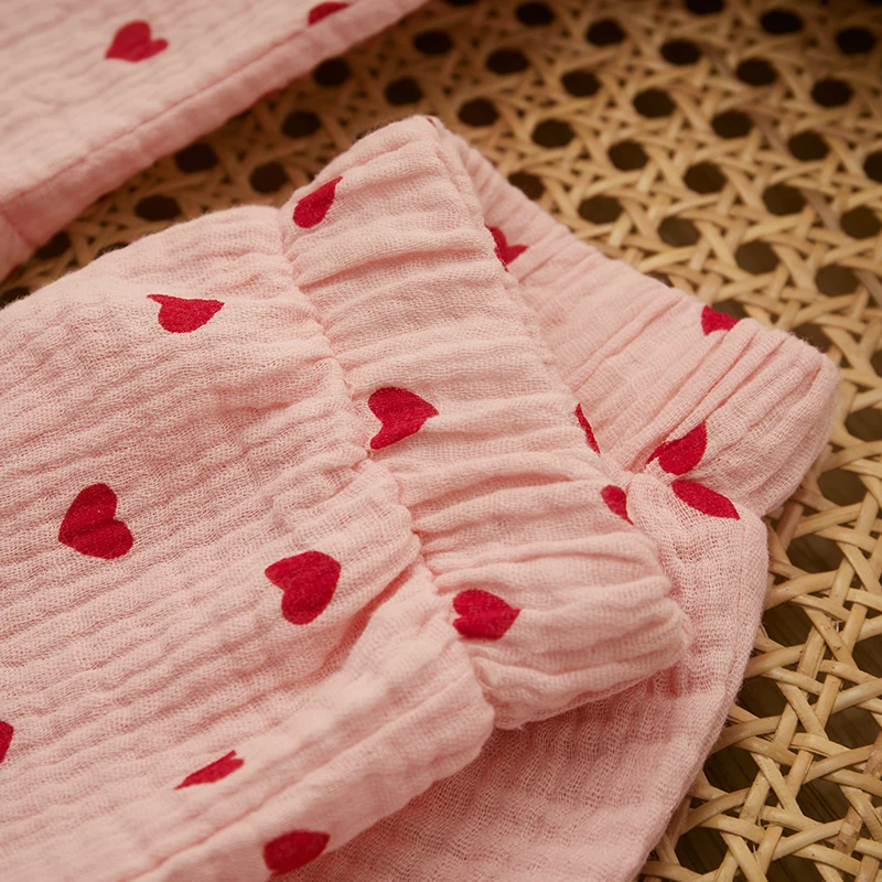 - > Verão bebê menina menino conjunto de pijama algodão linho botão para baixo roupas manga curta coração impressão topos shorts crianças loungewear pijamas