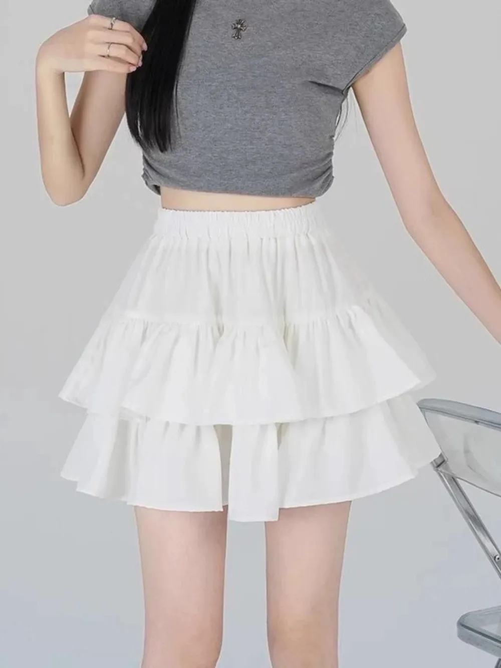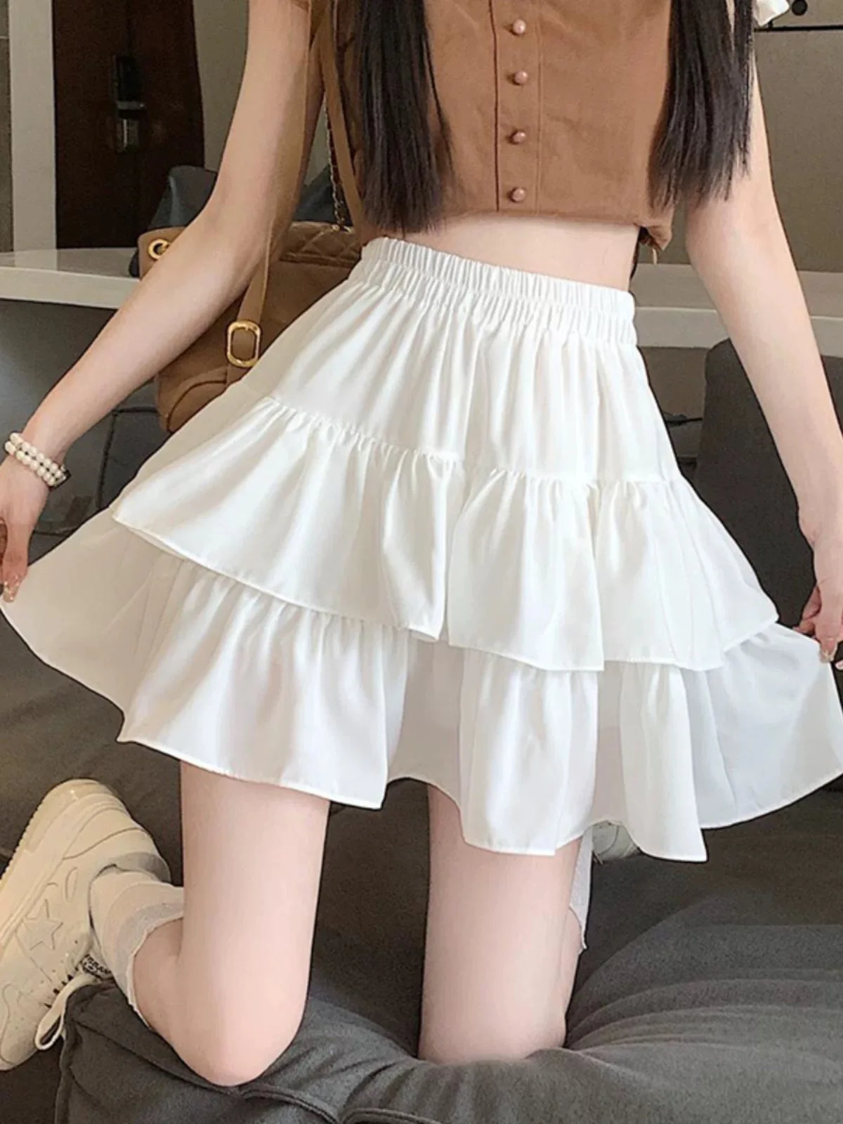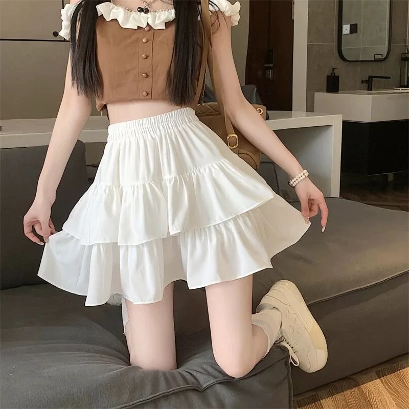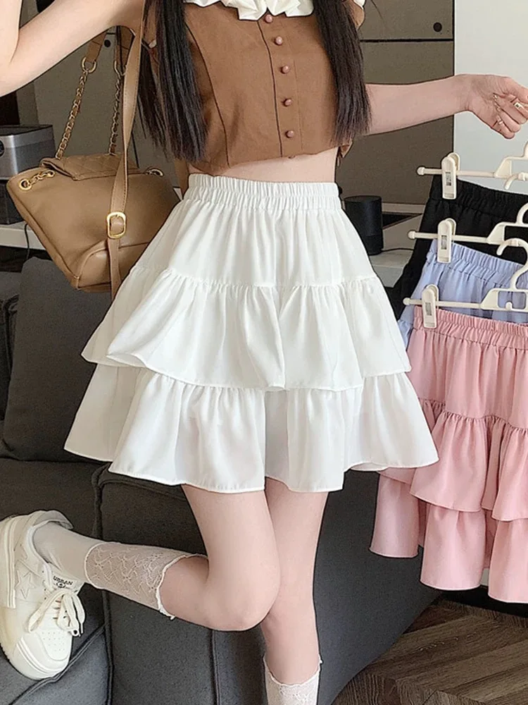 Verão kawaii mini saia linha a adorável glamour cintura alta plissado retalhos lolita vestido de baile y2k coreano doce roupas femininas