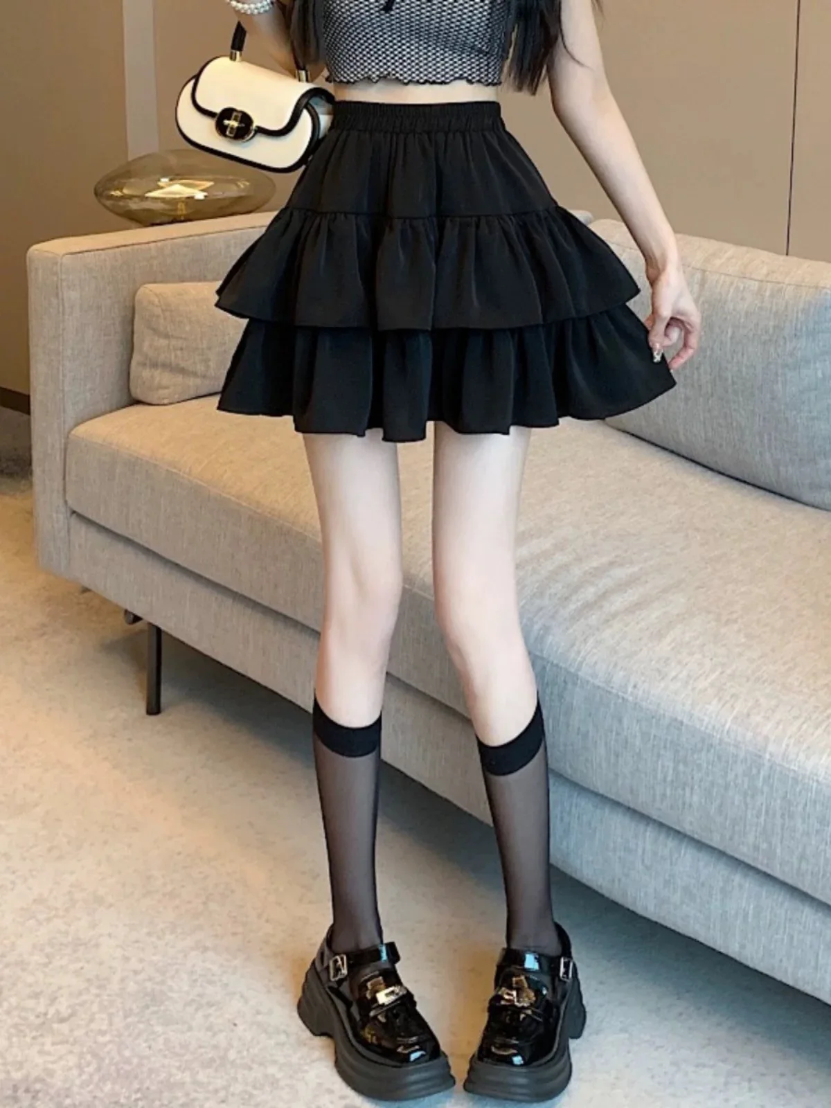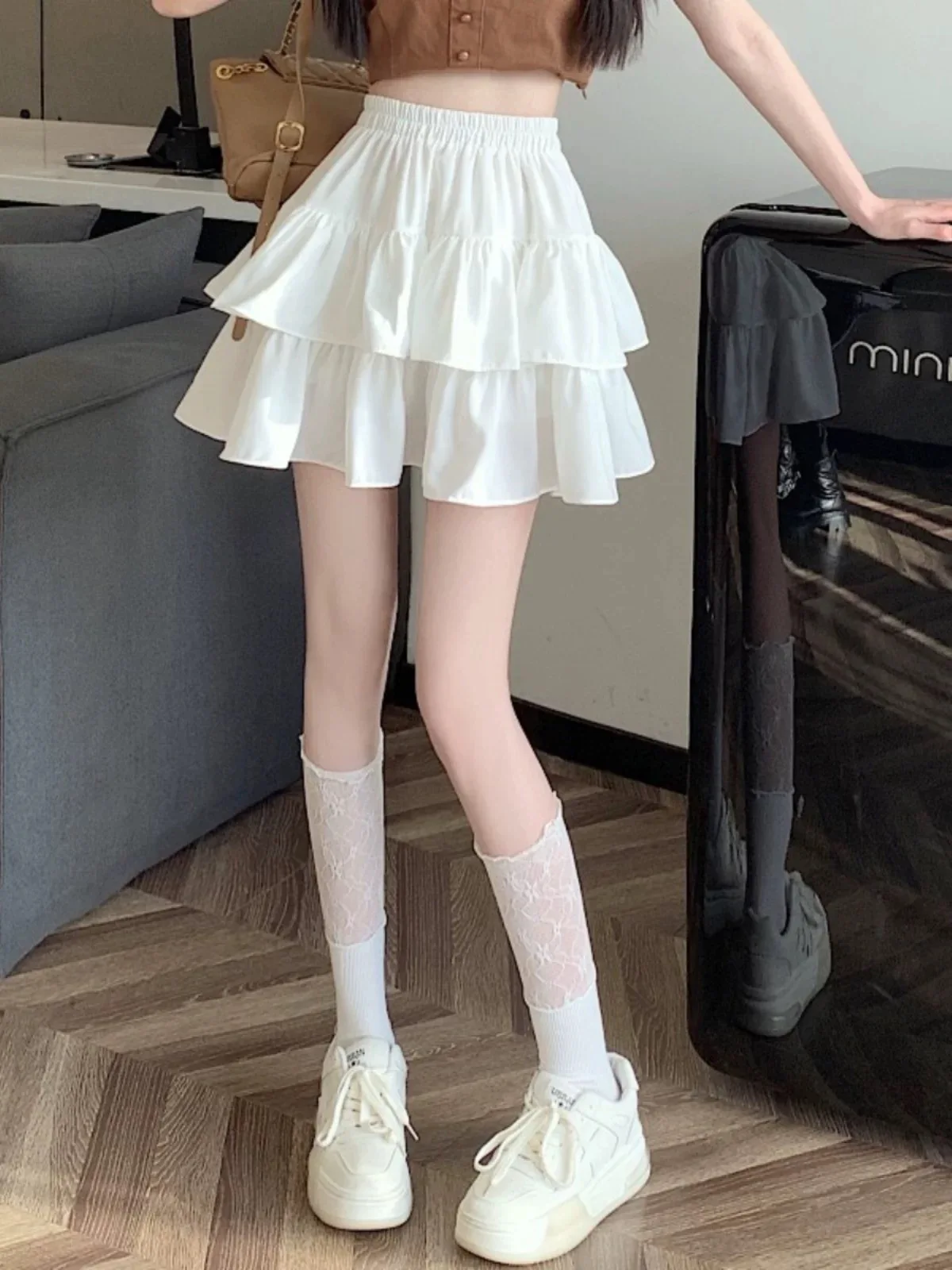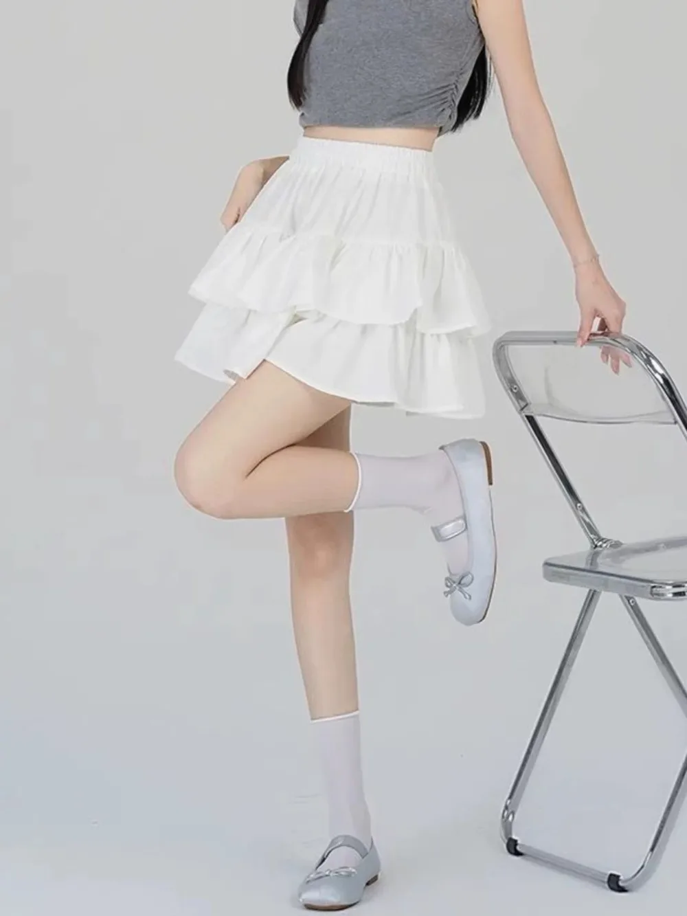 Verão kawaii mini saia linha a adorável glamour cintura alta plissado retalhos lolita vestido de baile y2k coreano doce roupas femininas