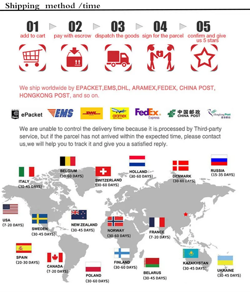 -----Para pedidos urgentes, leva de 3 a 7 dias para designs diferentes, precisa confirmar com o serviço de vendas antes de fazer o pedido.
