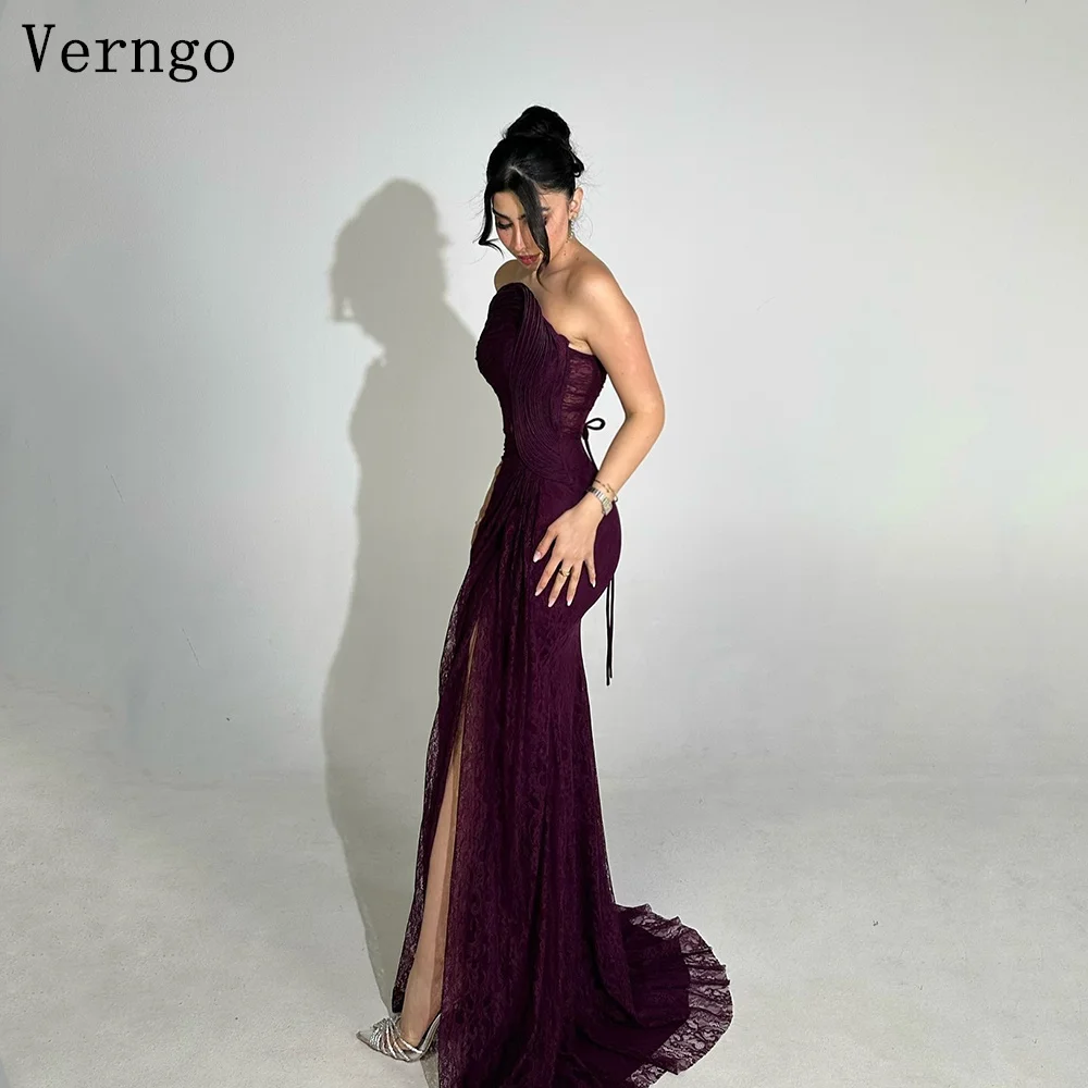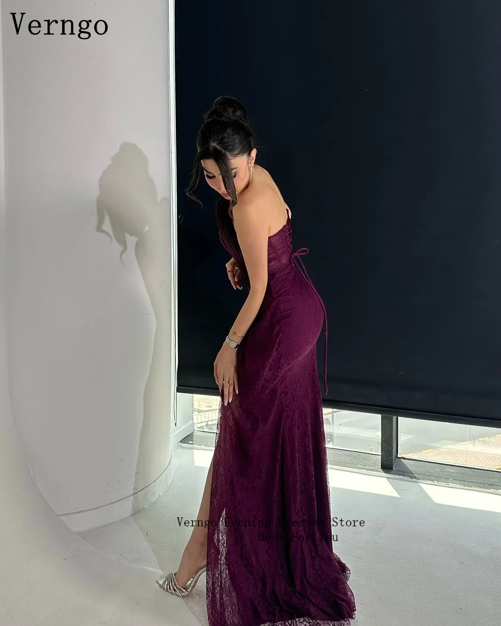 Verngo Vestidos de festa de renda sem alças vestido de baile preto menina sereia fenda vestido formal ????uden personalizado