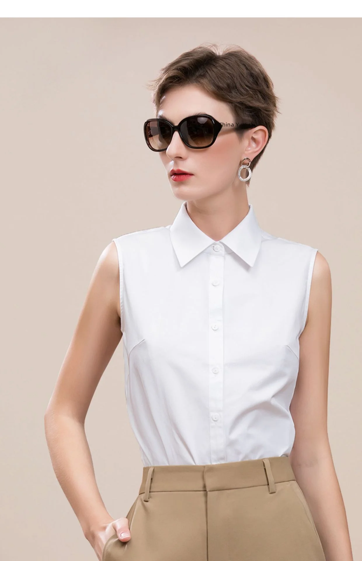 • Design sem mangas:O design sem mangas desta blusa permite maior movimento e flexibilidade, tornando-a ideal para uso diário ou ambientes profissionais.
