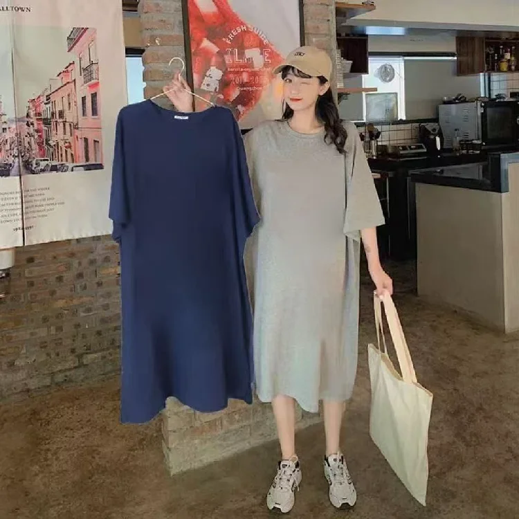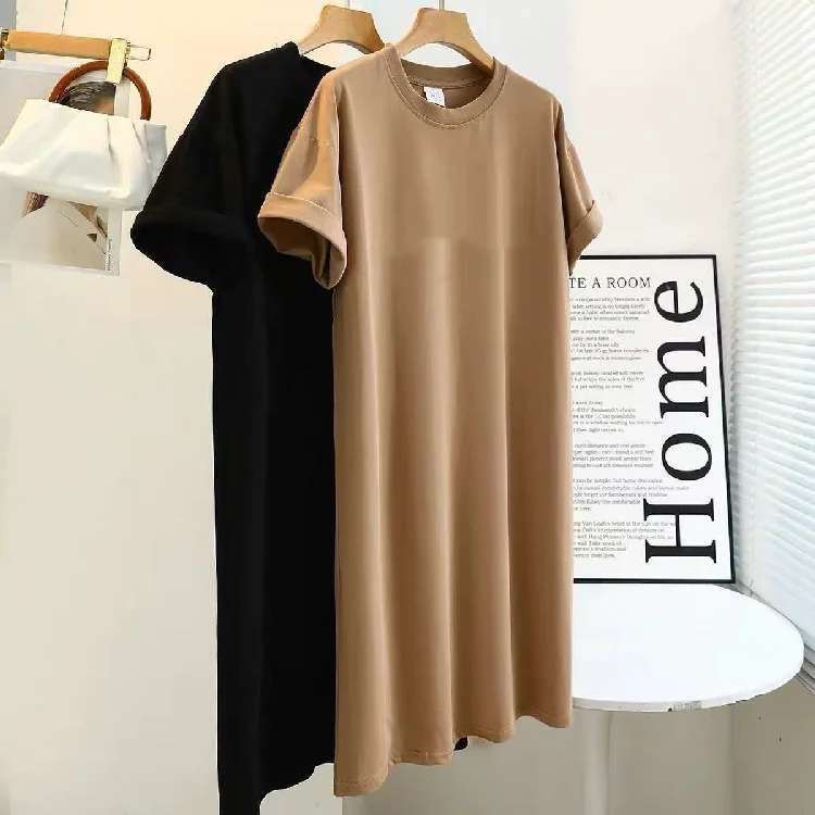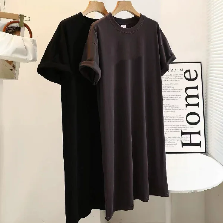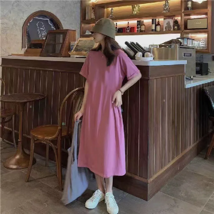 Vestido Casual de Verão Estilo Coreano com Saia Solta de Crimento Médio, Manga Curta e Fenda Aberta, Ideal para Mulheres J...