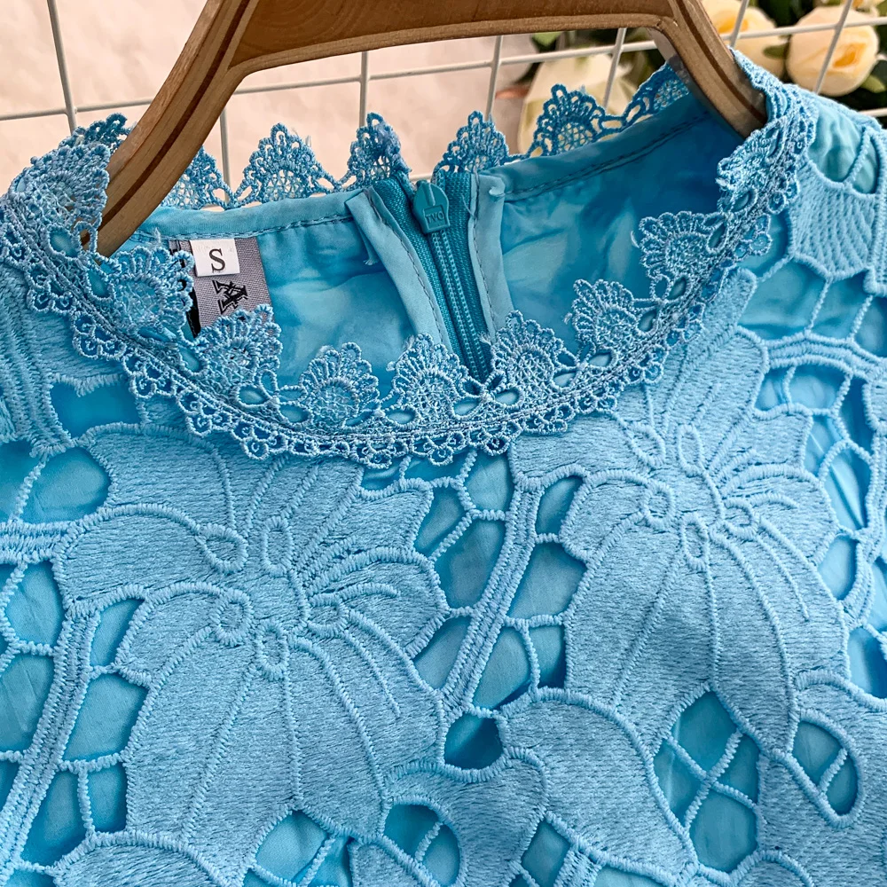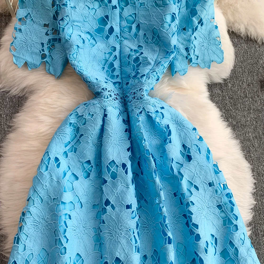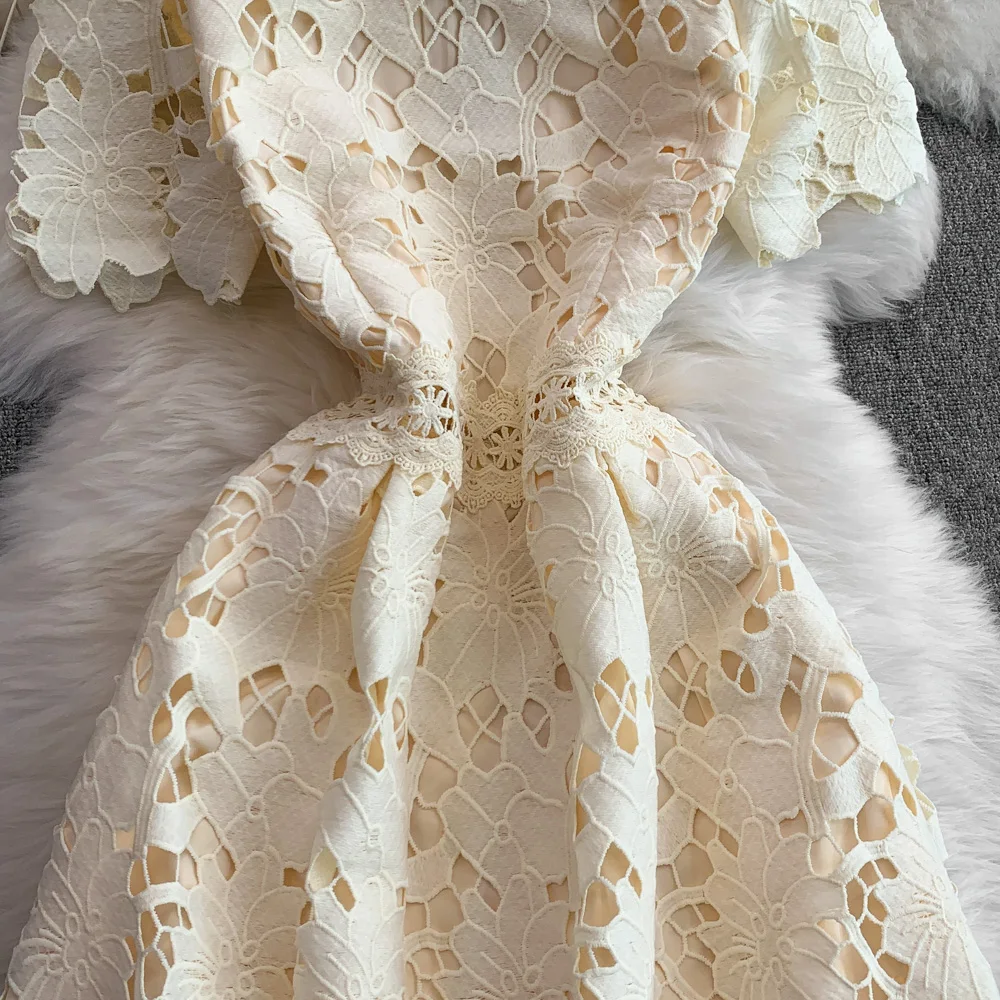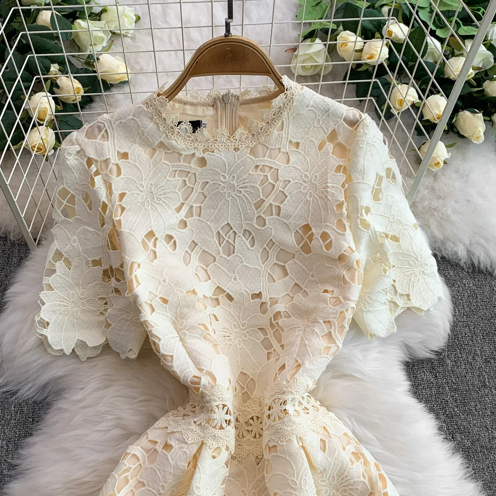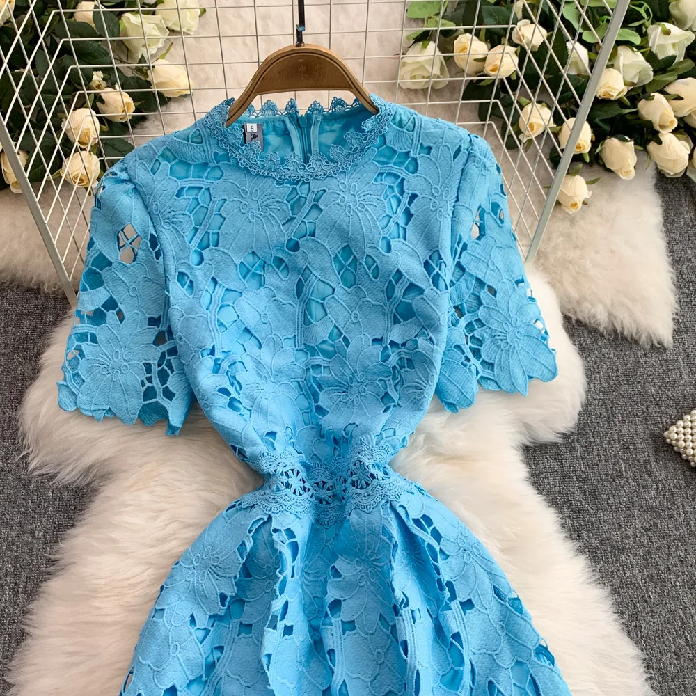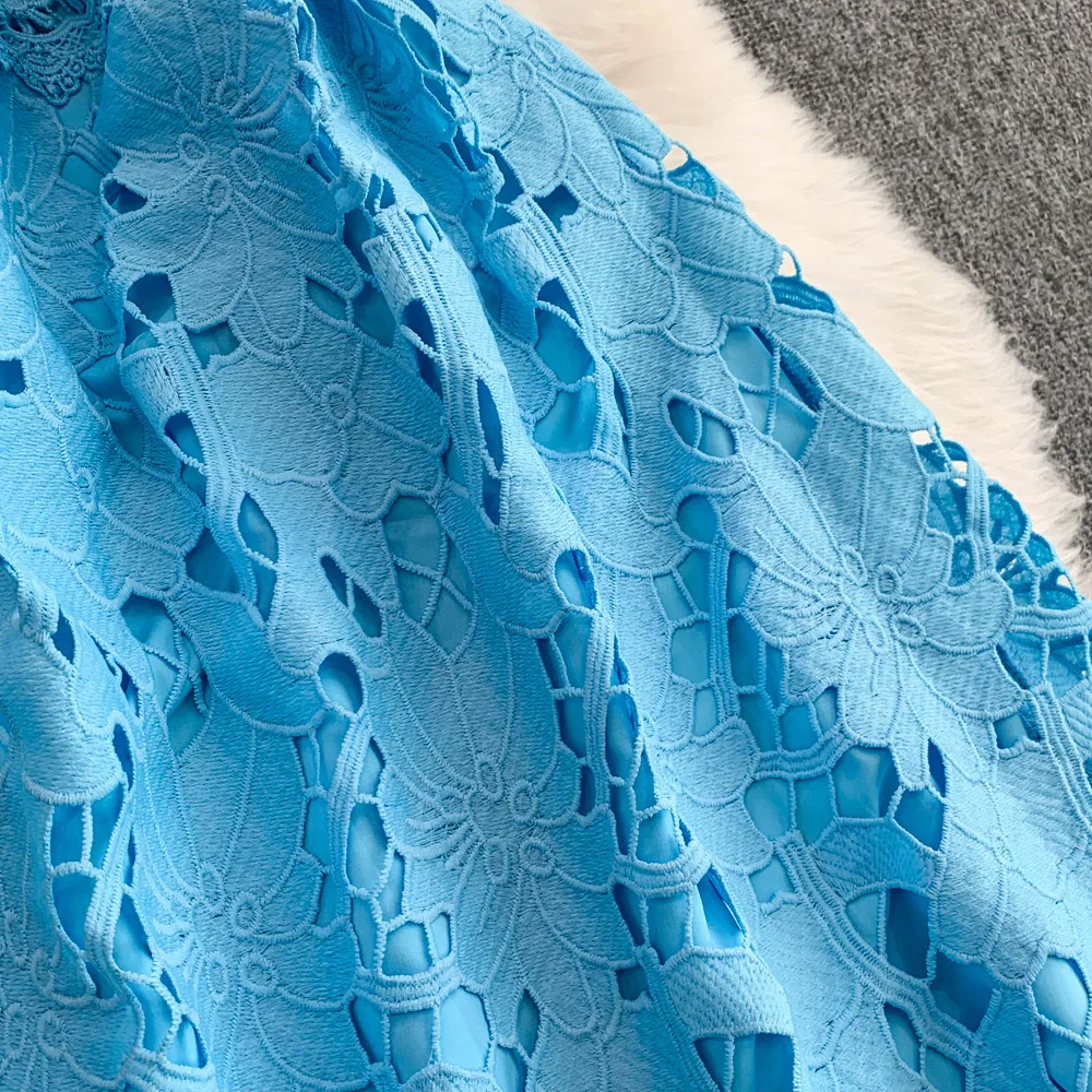 Vestido F E de Verão com Renda e Gola Redonda, Saia Longa de Cintura Alta com Efeito Emaecedor, Estilo Corean...