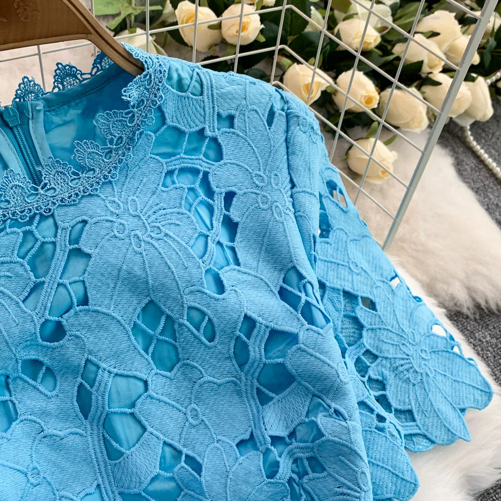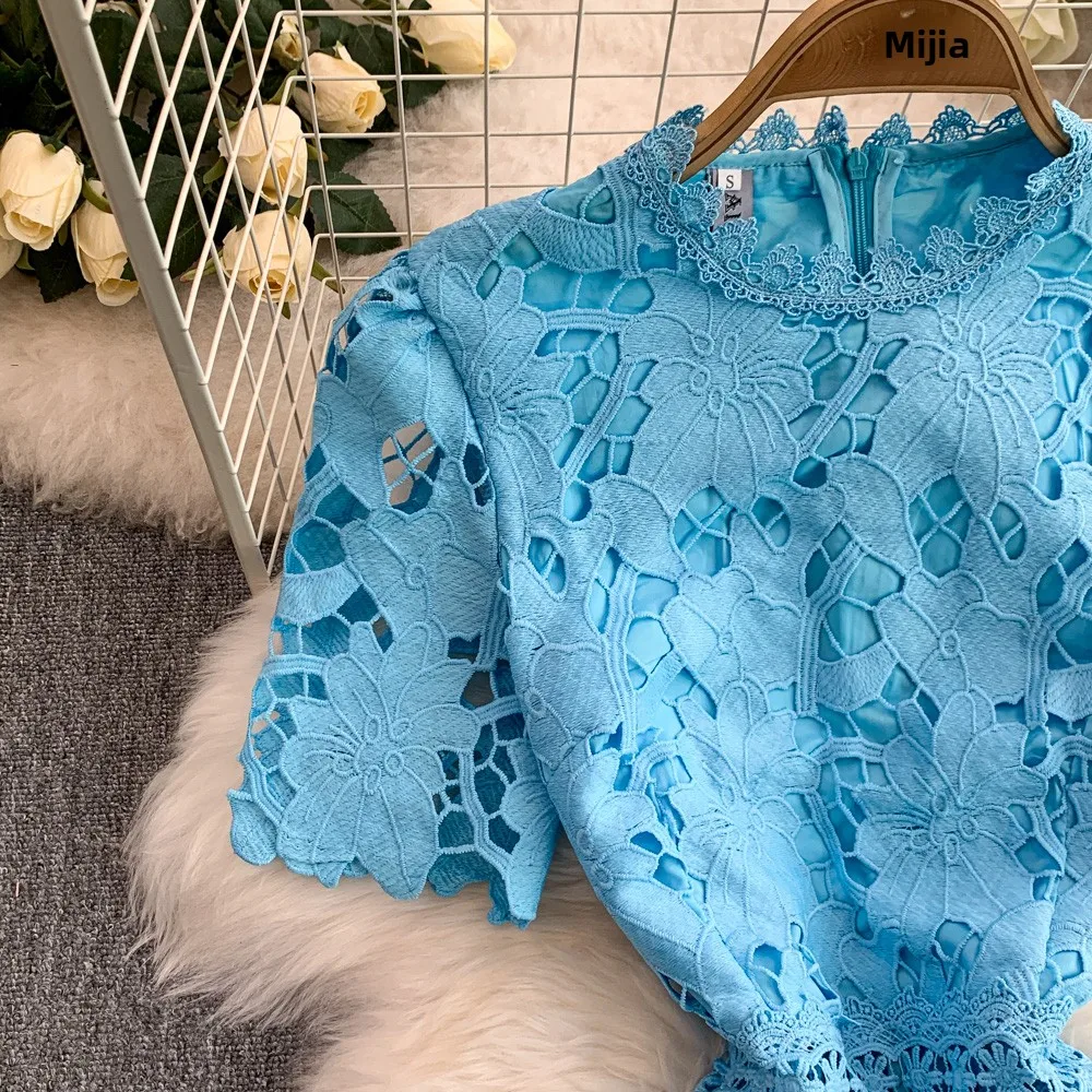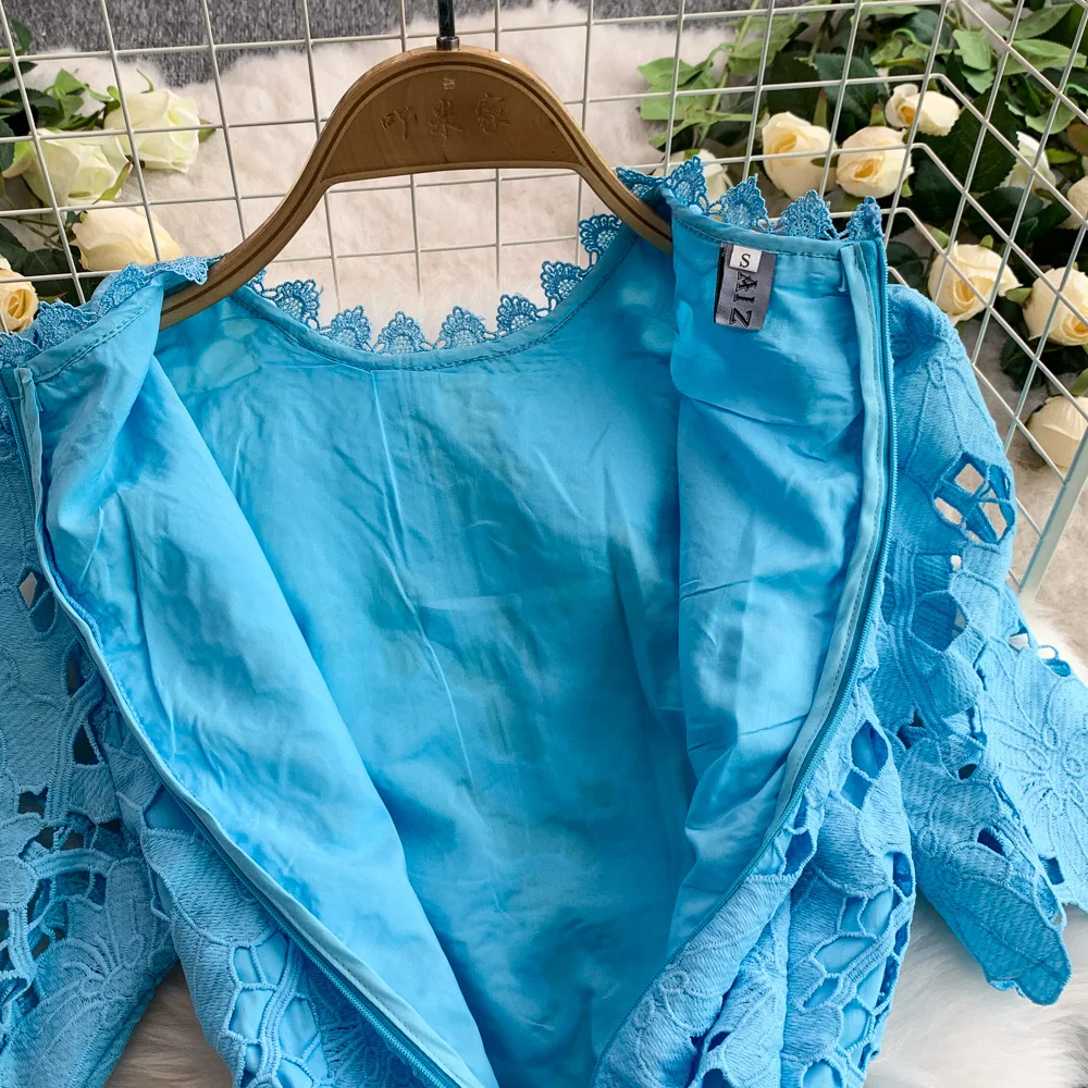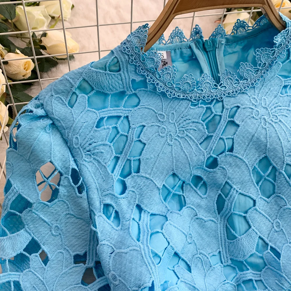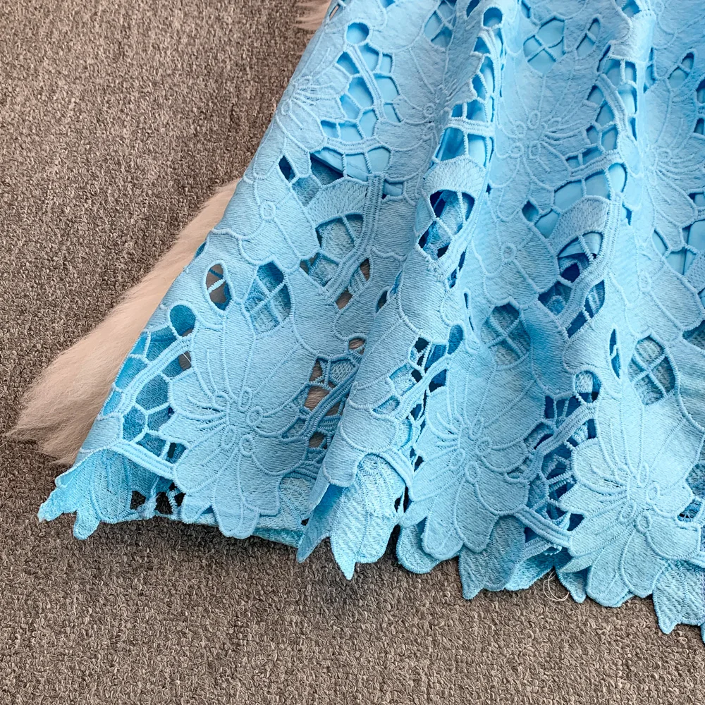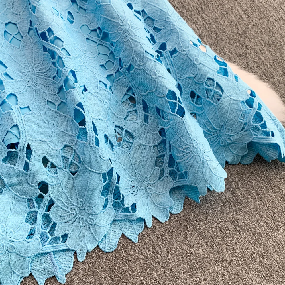 Vestido F E de Verão com Renda e Gola Redonda, Saia Longa de Cintura Alta com Efeito Emaecedor, Estilo Corean...