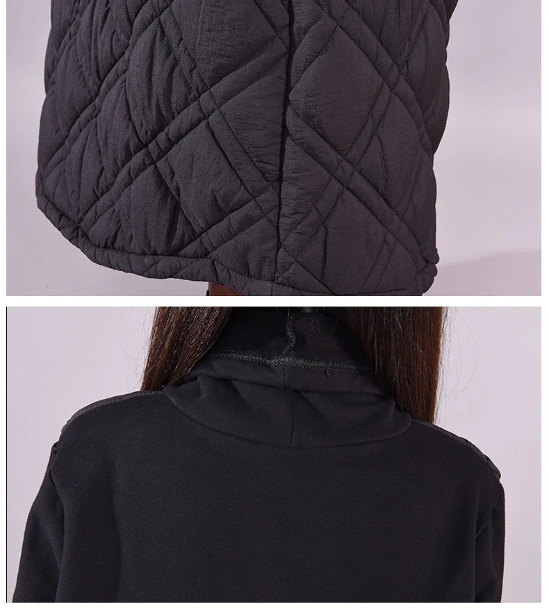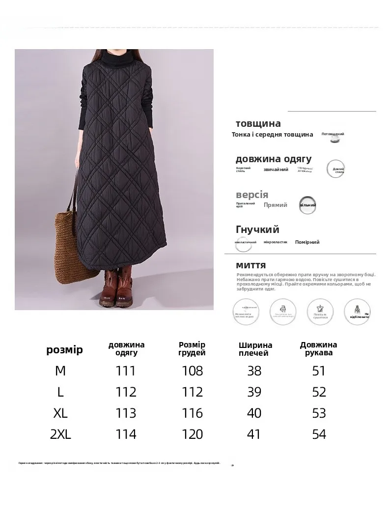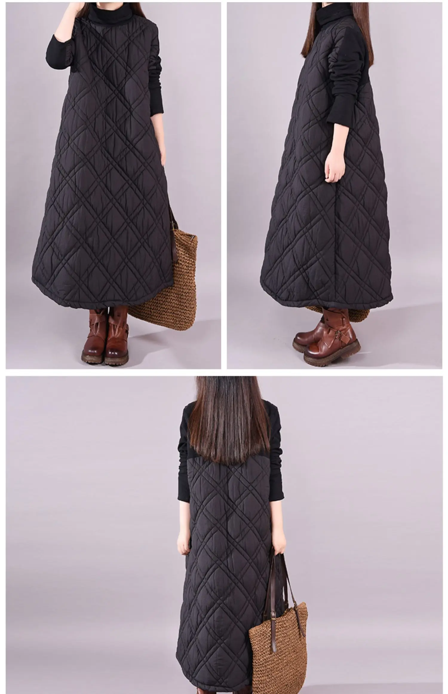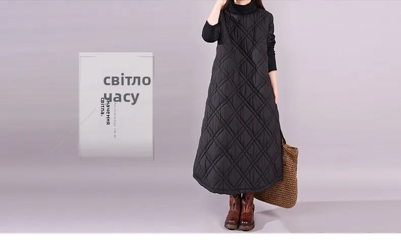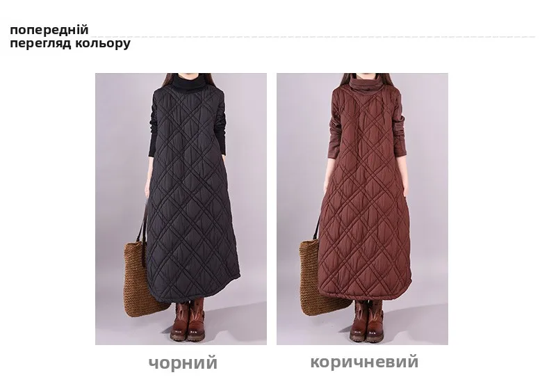 Vestido F sso e Quente de Gola Alta, Solto, Crimento Médio, Acolchoado de Aodão com Padrão Diamante, Estilo In...