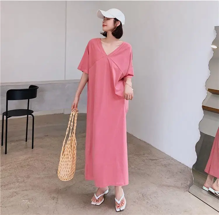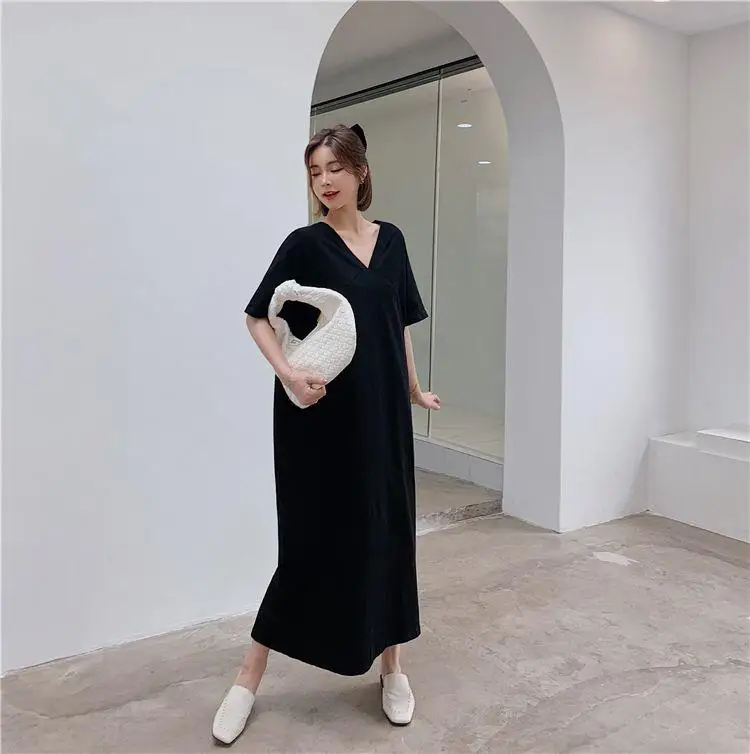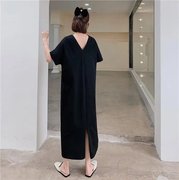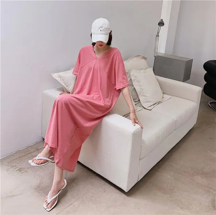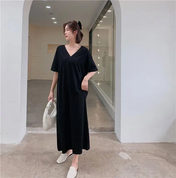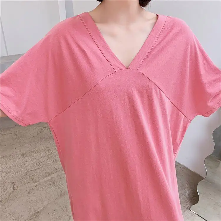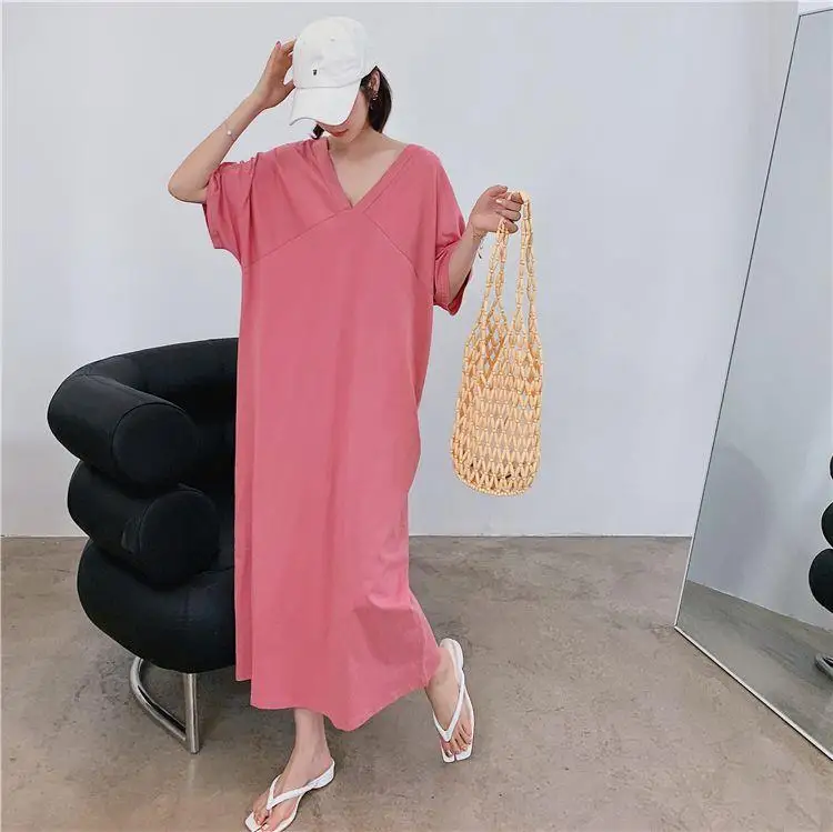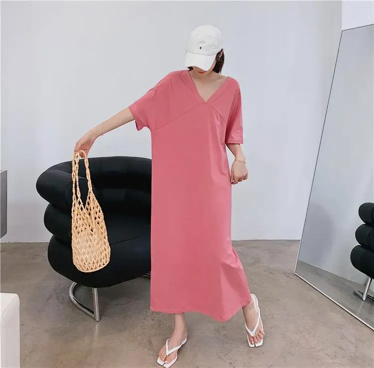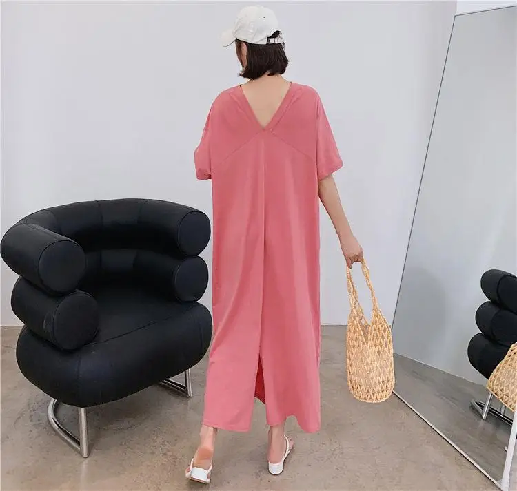 Vestido Longo T-irt Plus Size para Mulheres, 300 Libras, Novo Estilo Coreano, Solto, Crimento até o Joelho, Manga Curta,...