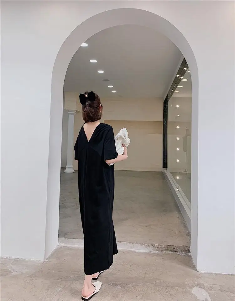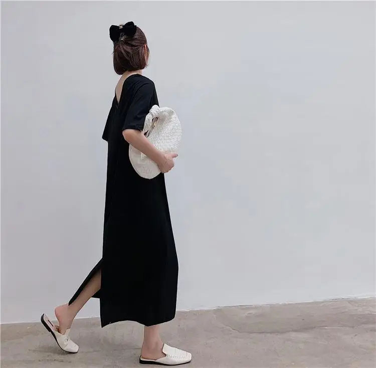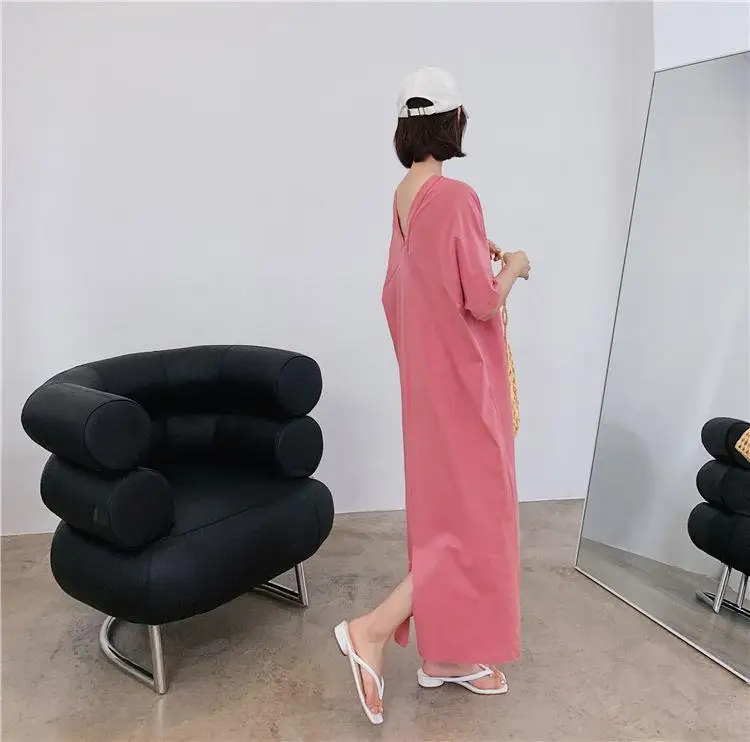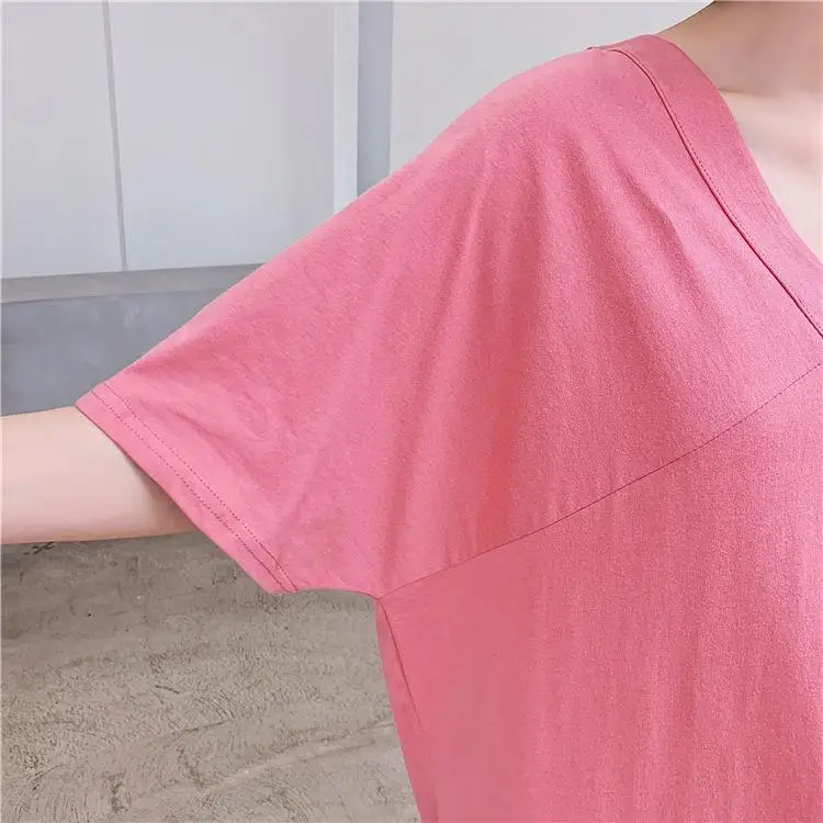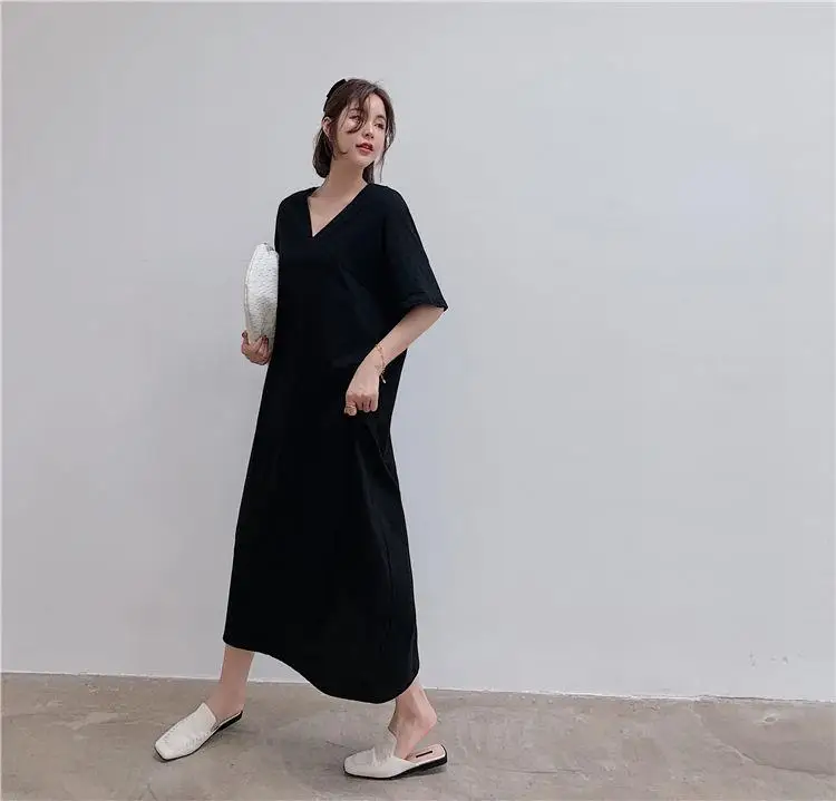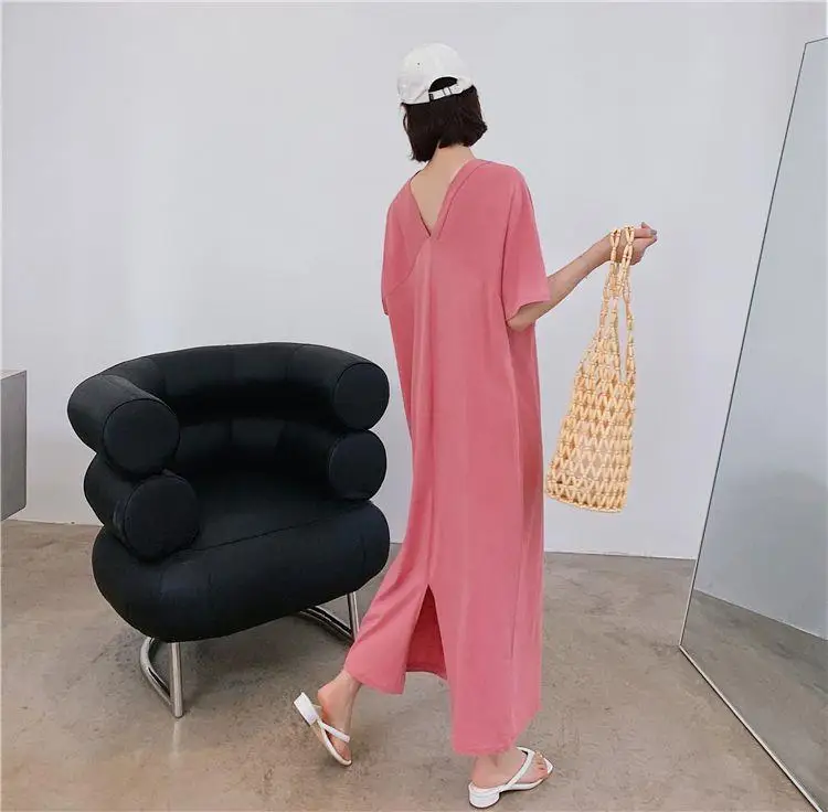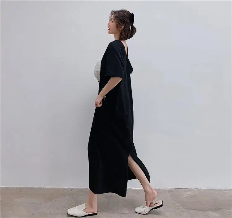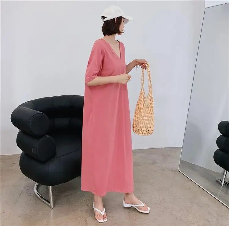 Vestido Longo T-irt Plus Size para Mulheres, 300 Libras, Novo Estilo Coreano, Solto, Crimento até o Joelho, Manga Curta,...