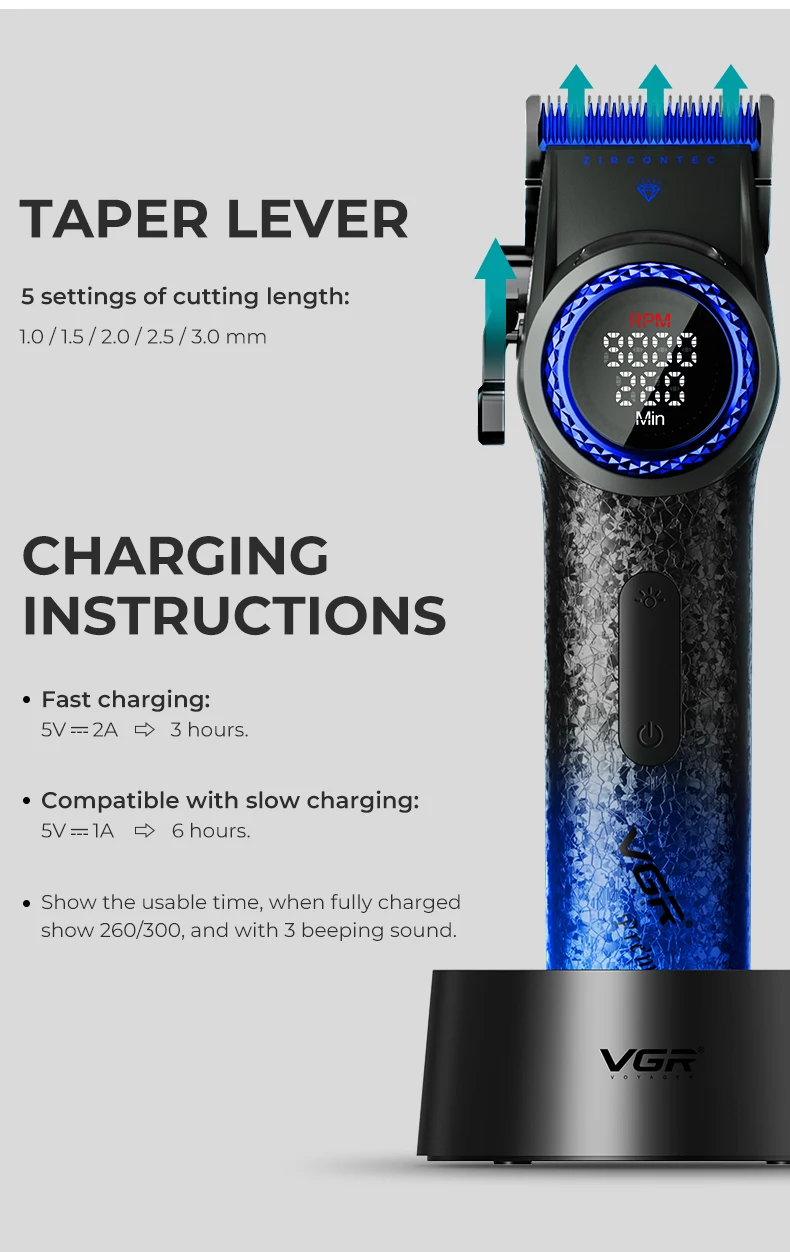 VGR Máquina de cortar cabelo 9000 RPM Máquina de cortar cabelo Sem escova Motor Máquina de cortar cabelo Elétrica Barbeiro Sem fio Máquina de cortar cabelo Metal Máquina de cortar cabelo masculina V-001