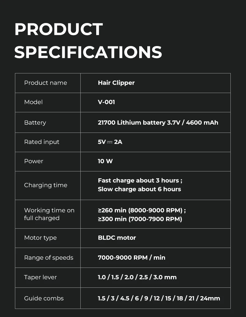 Alimentado por um motor DC sem escova para desempenho superior, ruído mínimo e vida útil prolongada.Oferece torque consistente para cortar todos os tipos de cabelo sem esforço.