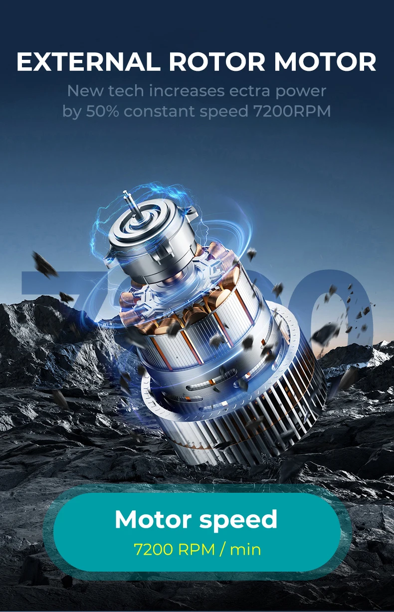 Equipado com um motor de rotor externo DC sem escova de alto desempenho operando a 7.200 rotações por minuto (RPM), este cortador oferece desempenho de corte poderoso e consistente com ruído e vibração mínimos.O design sem escova garante maior vida útil do motor, redução do acúmulo de calor e eficiência energética para um corte perfeito de nível profissional.