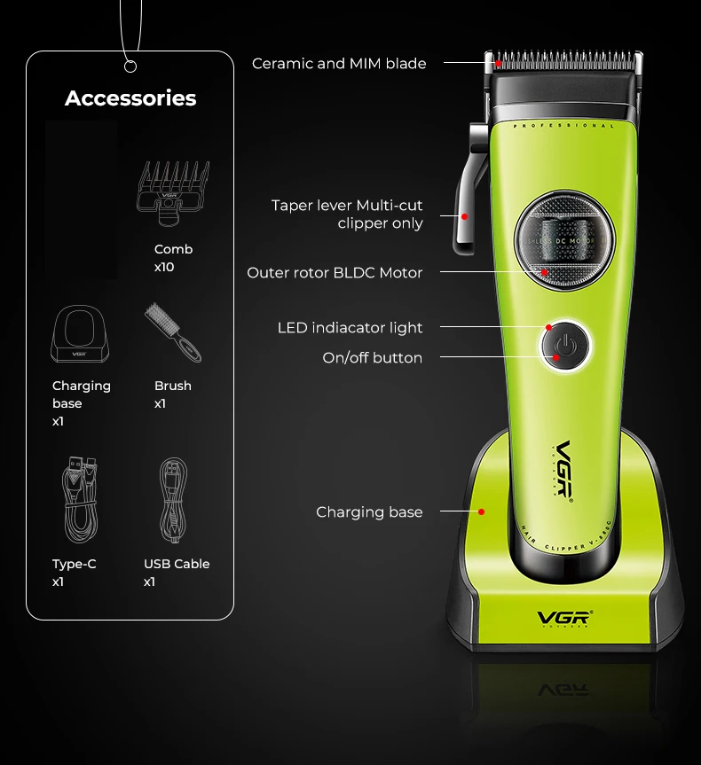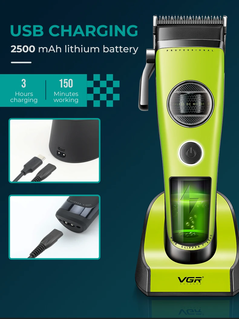 VGR maquina de cortar cabelo profissional Aparador de Pelos Profissional Máquina de Cortar Cabelo com Motor Sem Escovas Máquina de Cortar Cabelo Ajustável Base de Carregamento Aparador de Pelos Masculino V-880