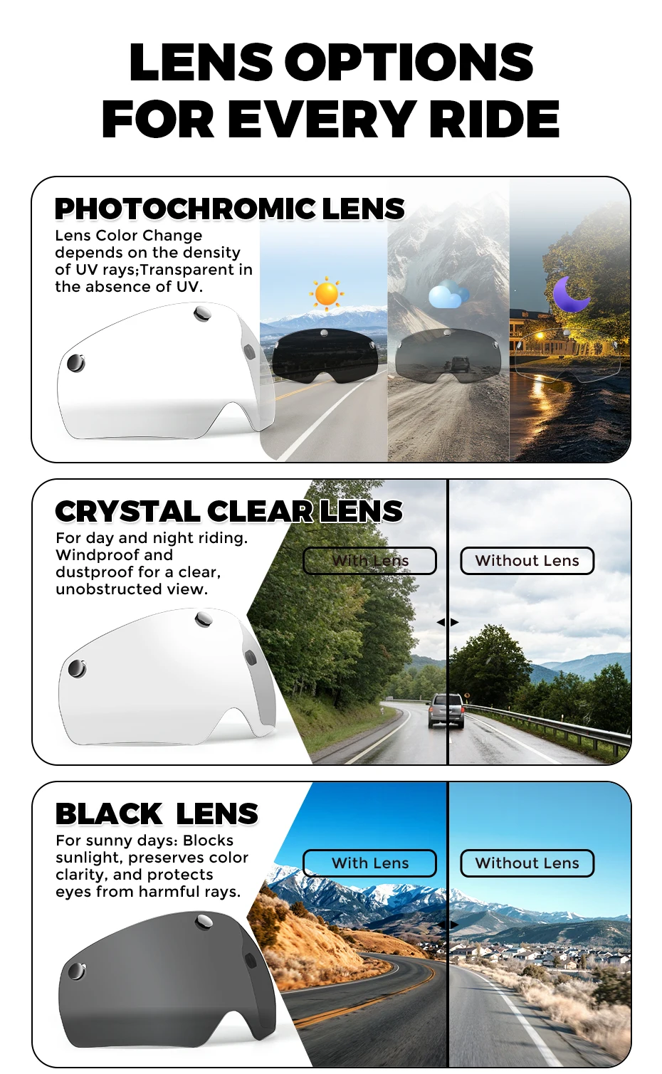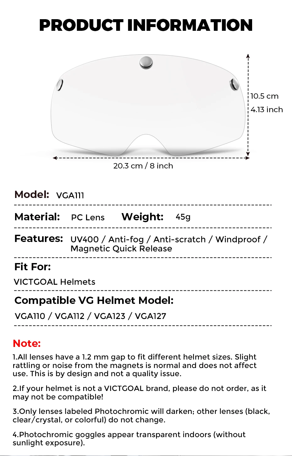 * Lentes de tamanho L adequadas para tamanho M, L, XL do capacete de bicicleta VG110/VG112.