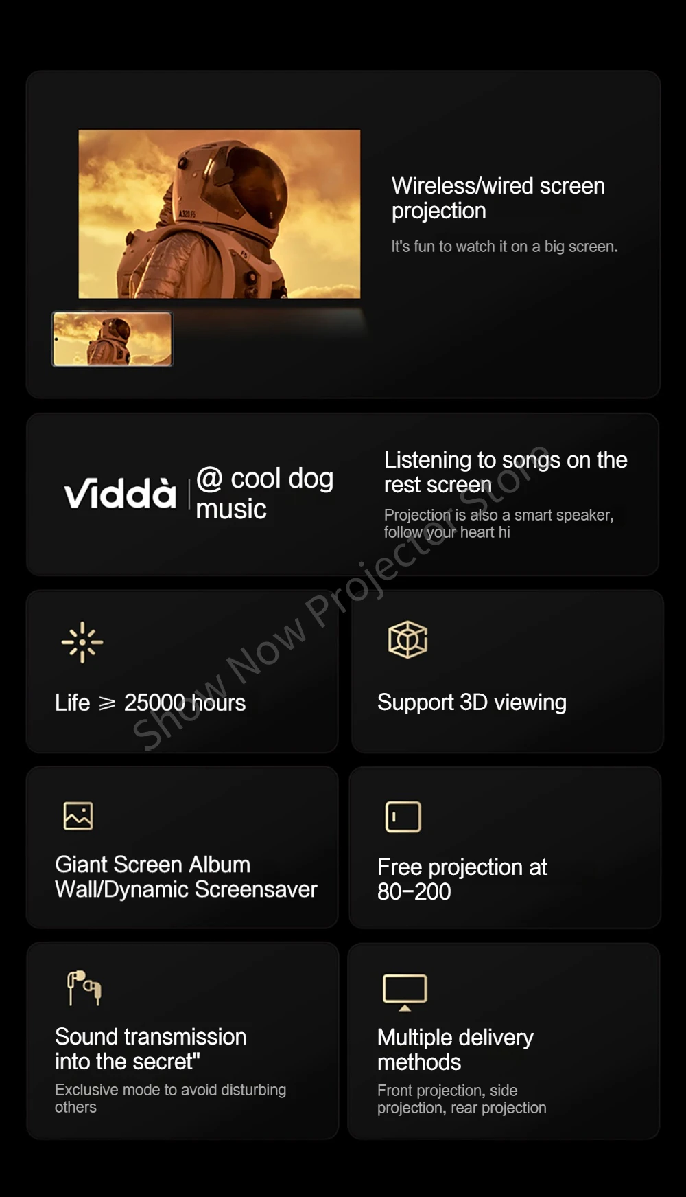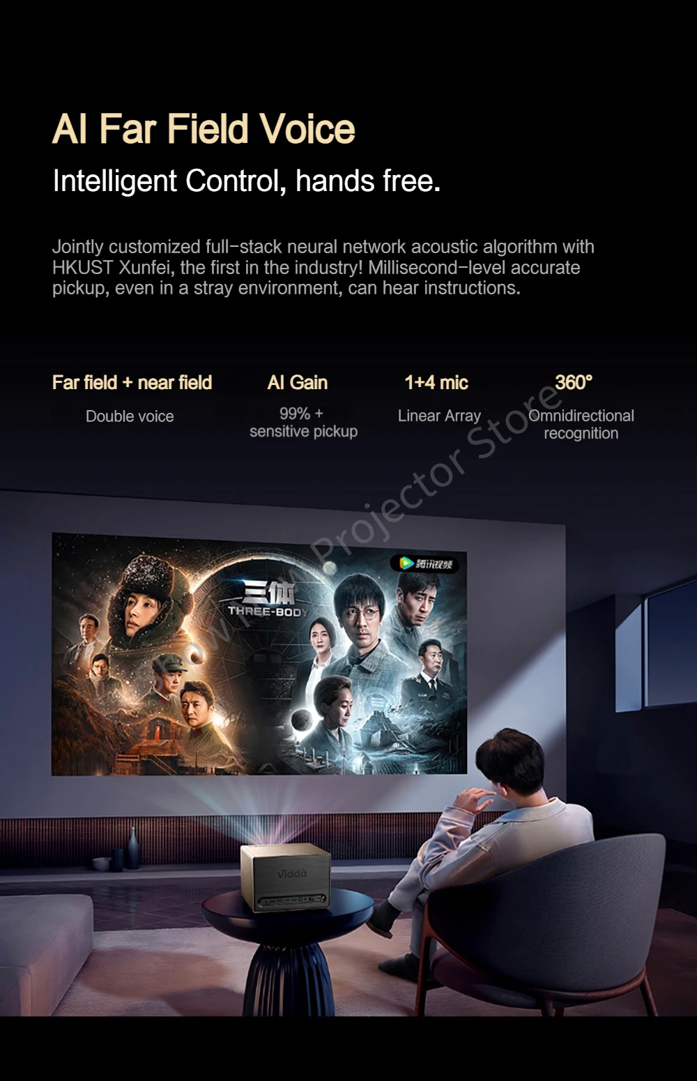 - > Vidda 4K projetor laser de três cores TV HDR 3840x2160 Projetor de vídeo para cinema em casa