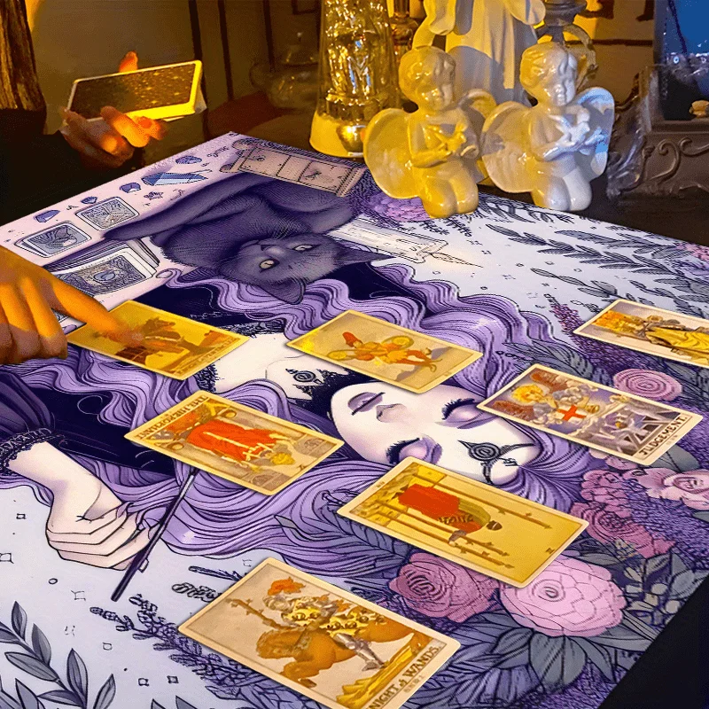 Vikama glicínias bruxa toalha de mesa tarô adivinhação gato preto cristal mesa redonda altar decorações ésotéricas