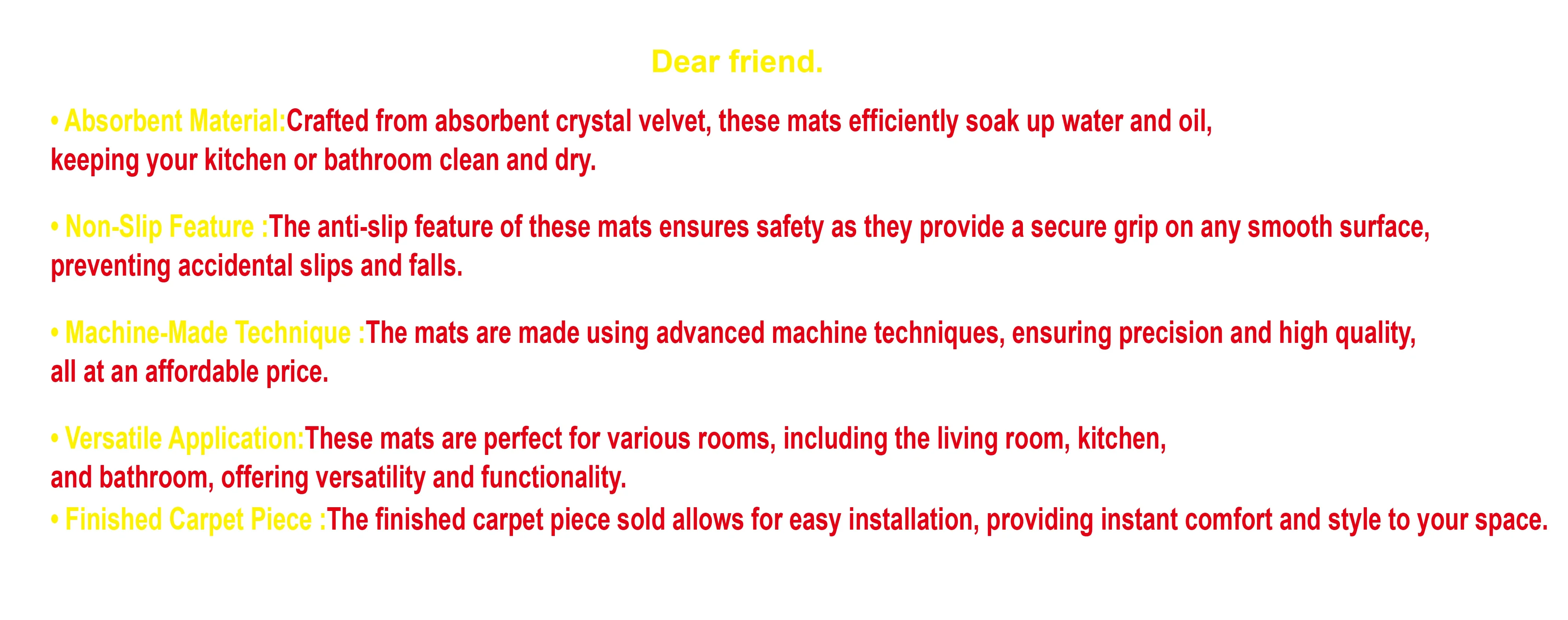 Product Characteristics: washable,dirt repellent,non-slip