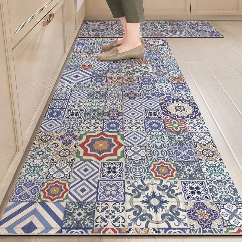 Vikamacrystal veludo cozinha tapetes à prova de óleo e à prova de água, lavável doméstico, longo, resistente à sujeira decoração de casa