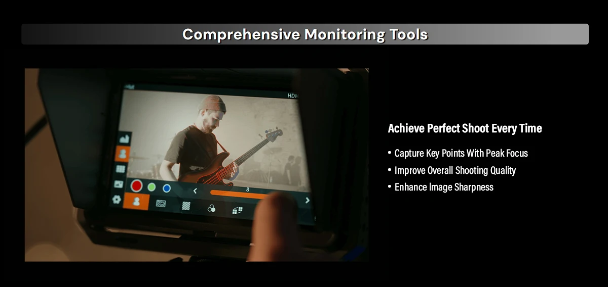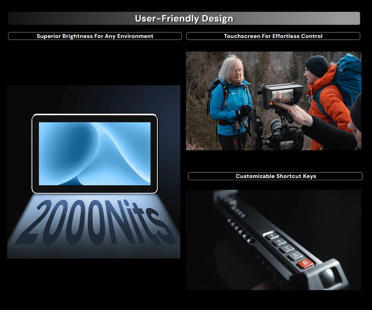 Entradas/saídas HDMI e SDI para integração perfeita com vários dispositivos; corpo leve em liga de alumínio projetado para confiabilidade em todos os ambientes.