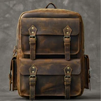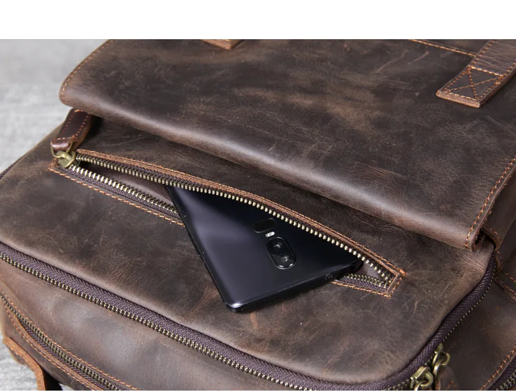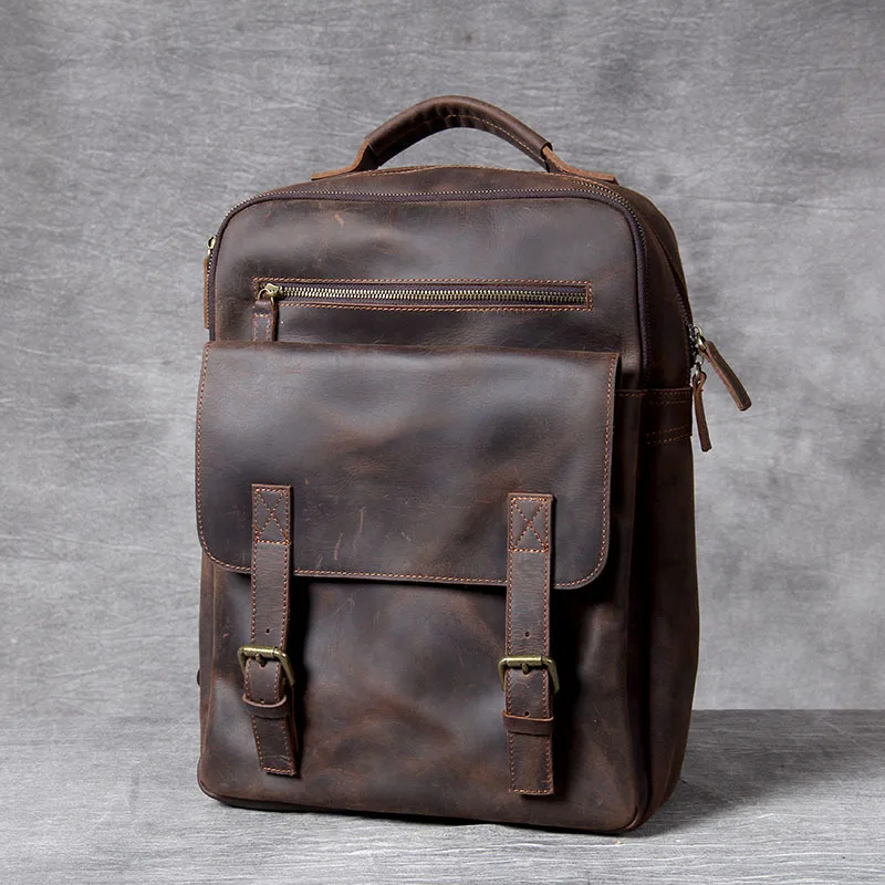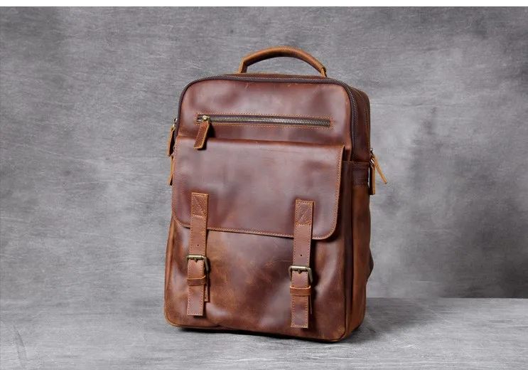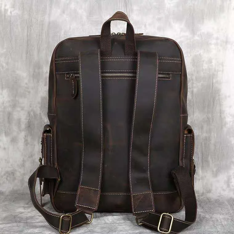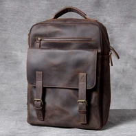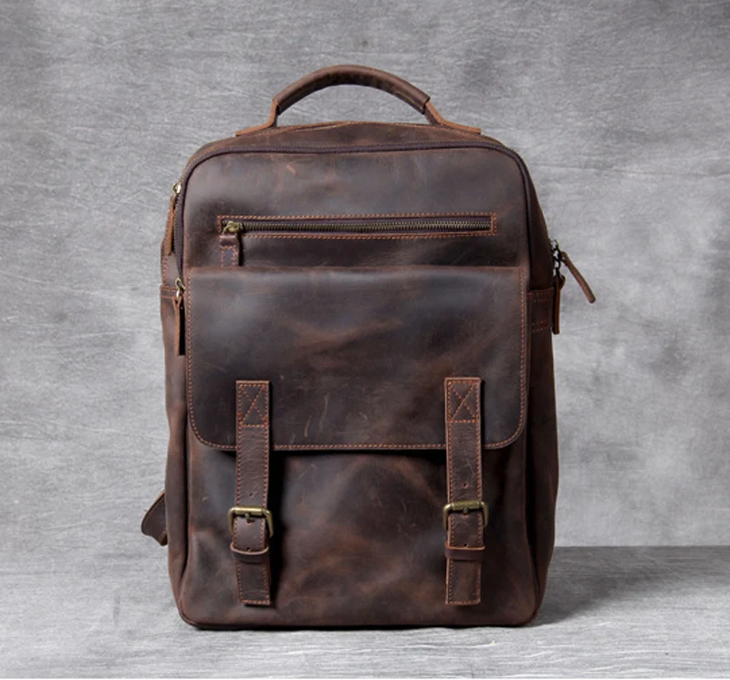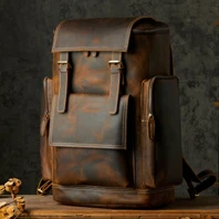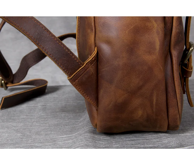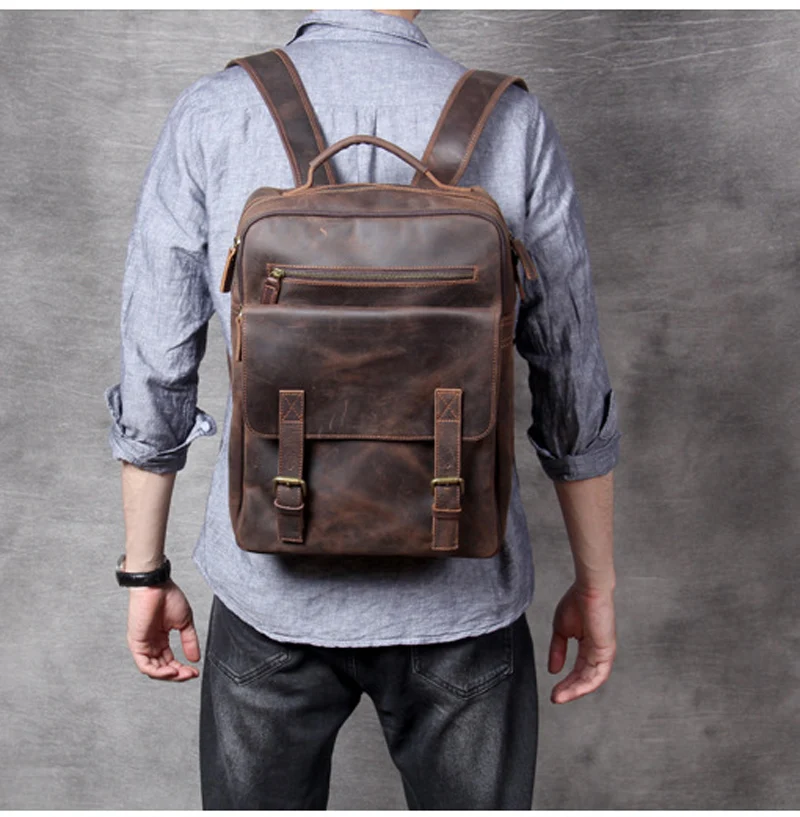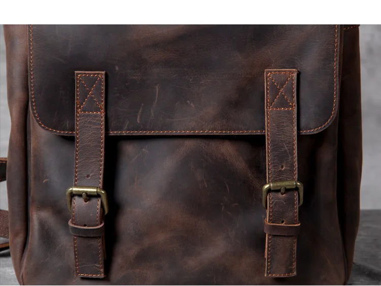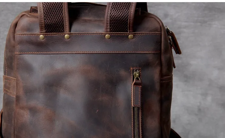 Vintage Crazy Horse Genuine Leather Men's BackpackHiking Backpack Travel Rucksack Large M815