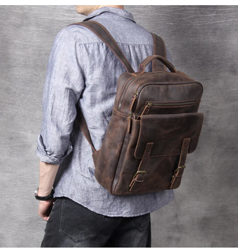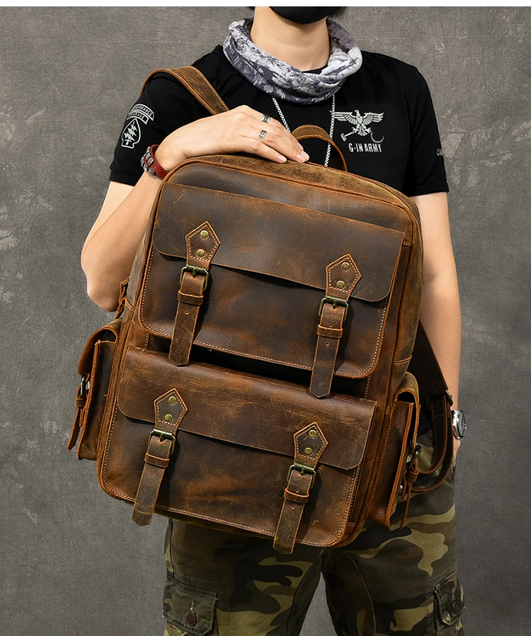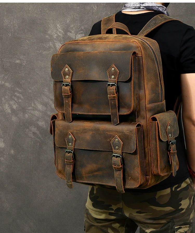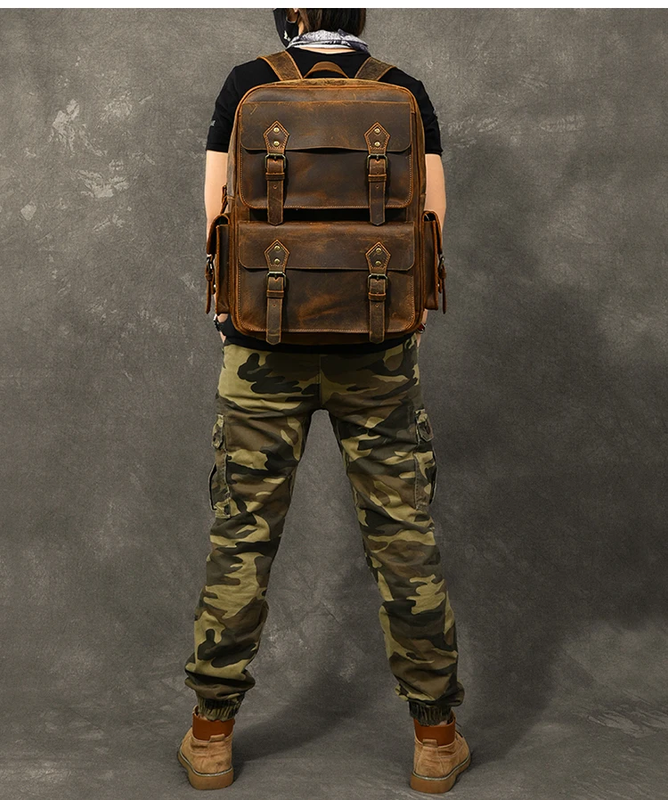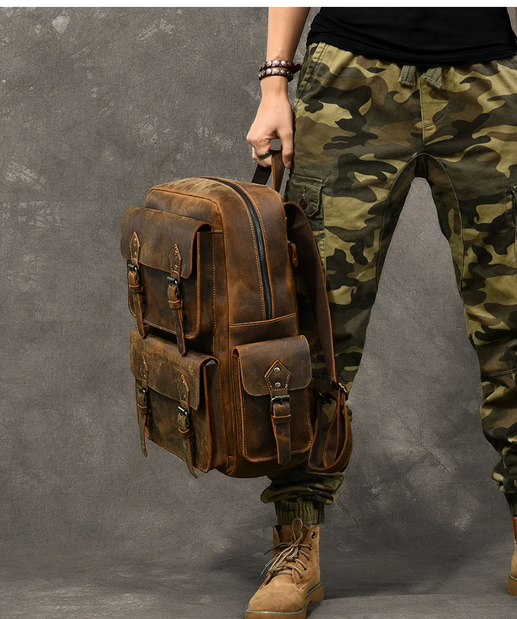 Vintage Crazy Horse Genuine Leather Backpack Men Hiking Bagpack laptop Bag outdoor Rucksack Large M811