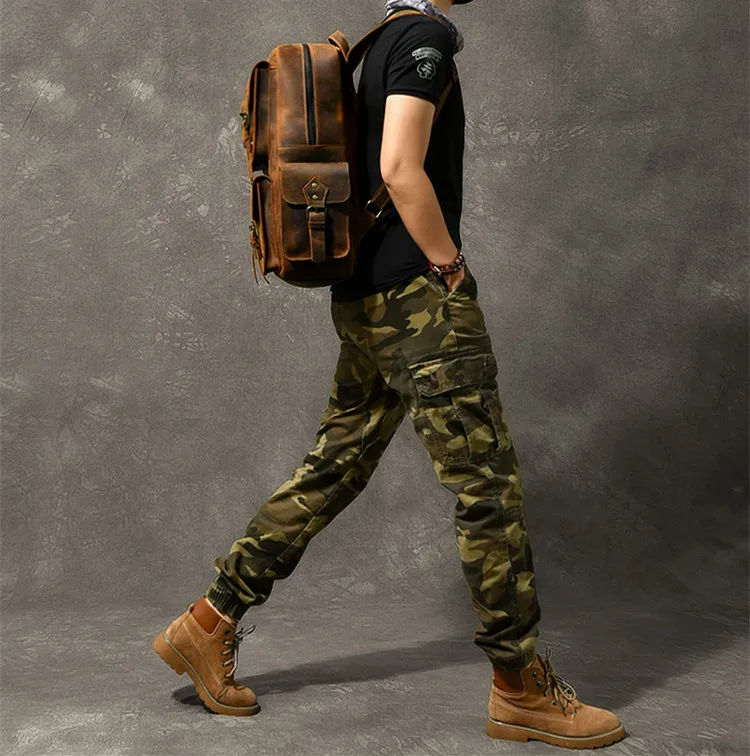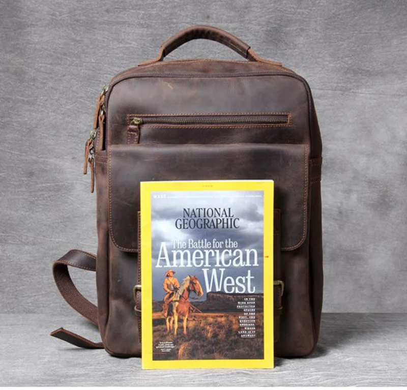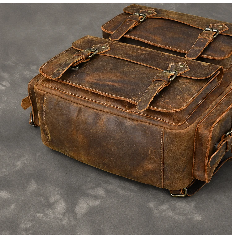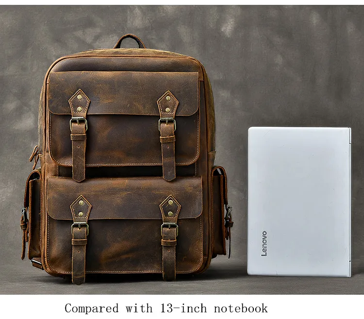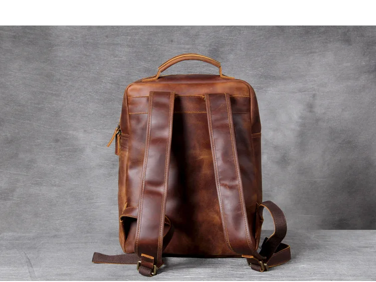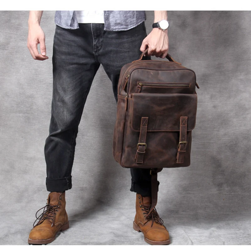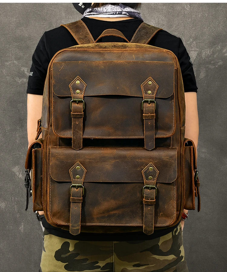 Vintage Crazy Horse Genuine Leather Backpack Men Hiking Bagpack laptop Bag outdoor Rucksack Large M811