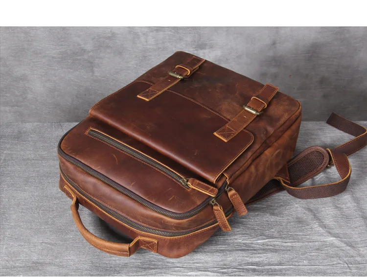 - > Vintage cavalo louco mochila de couro genuíno dos homens bagpack caminhadas mochila 17 "bolsa para portátil masculino viagem grande m815