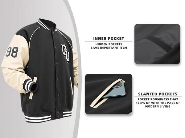 - > Vitage jaqueta universitária masculina manga de couro falso letterman leve bomberstyle jaqueta de beisebol 90s blusão streetwear