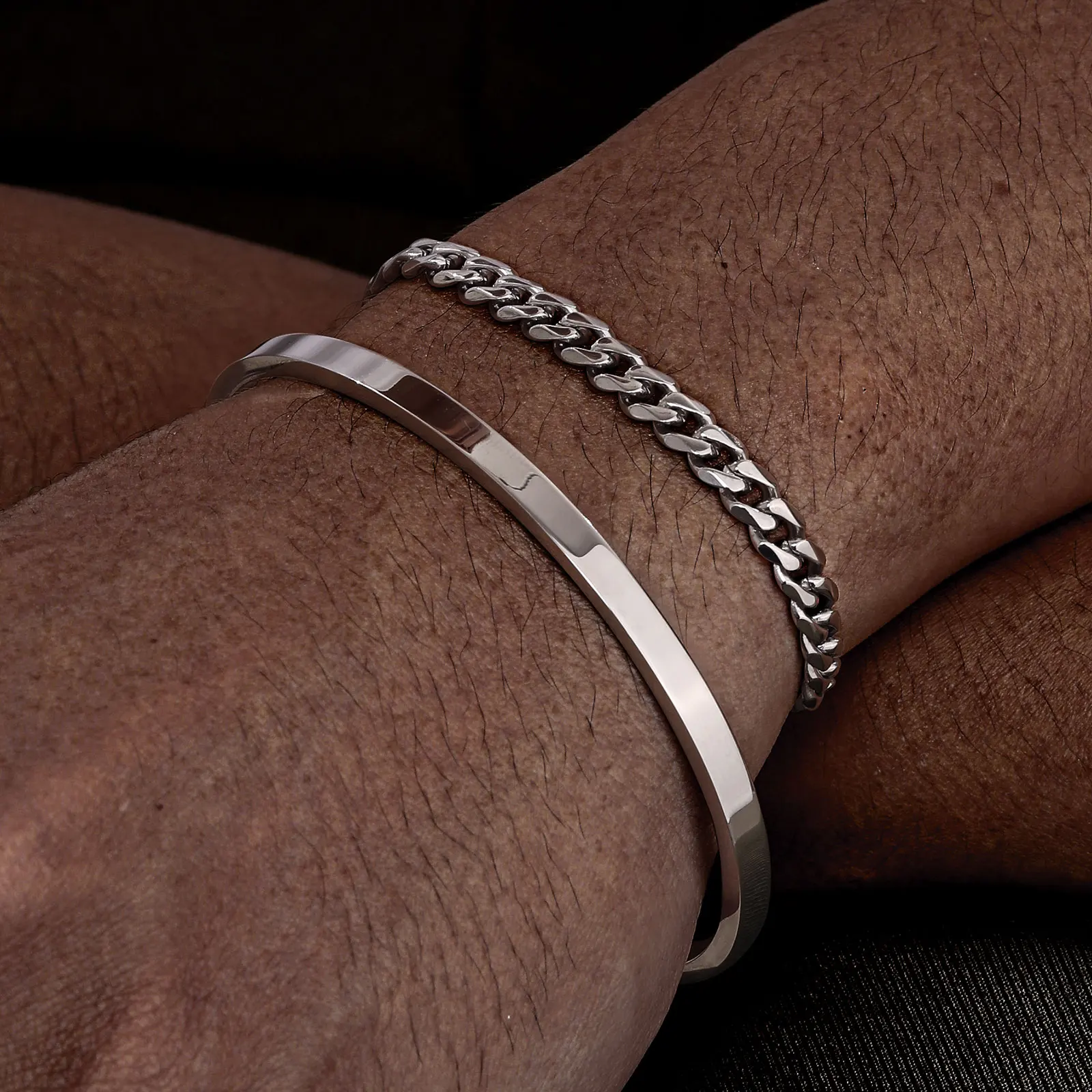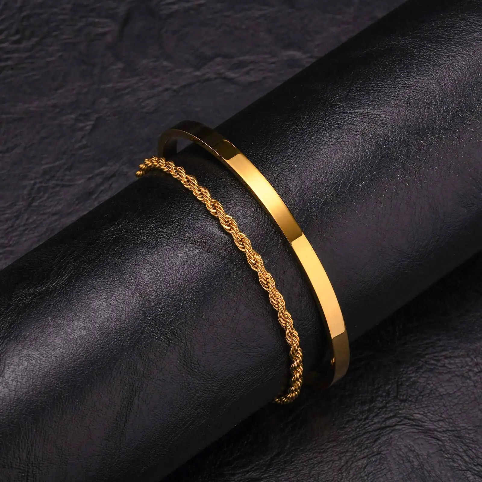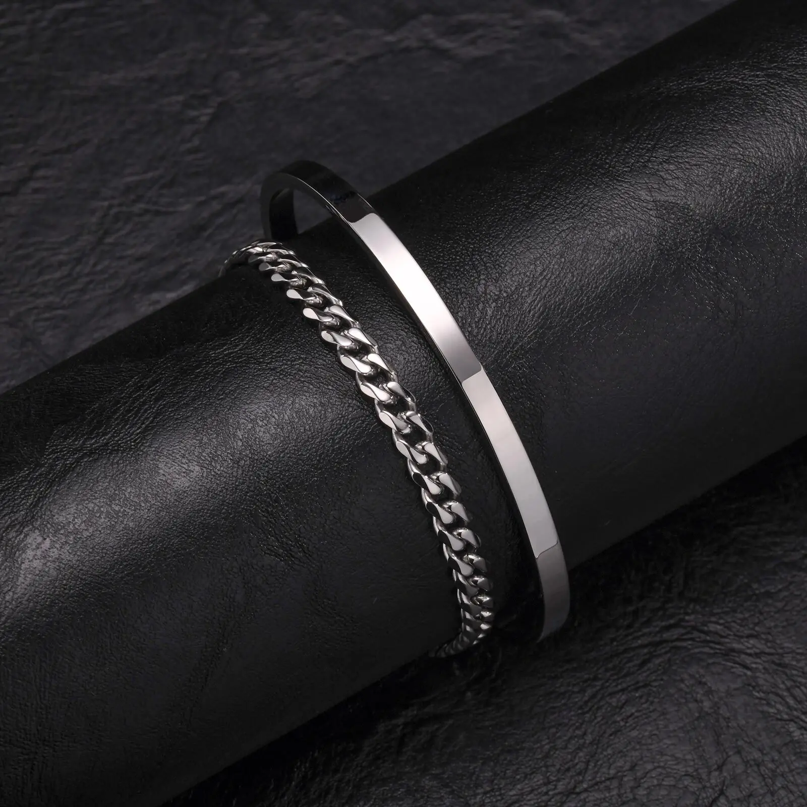 - > Vnox 2 peças de pulseiras empilháveis para homens e adolescentes, pulseira de punho aberto, corda torcida Figaro corrente cubana conjunto de pulseiras de corrente