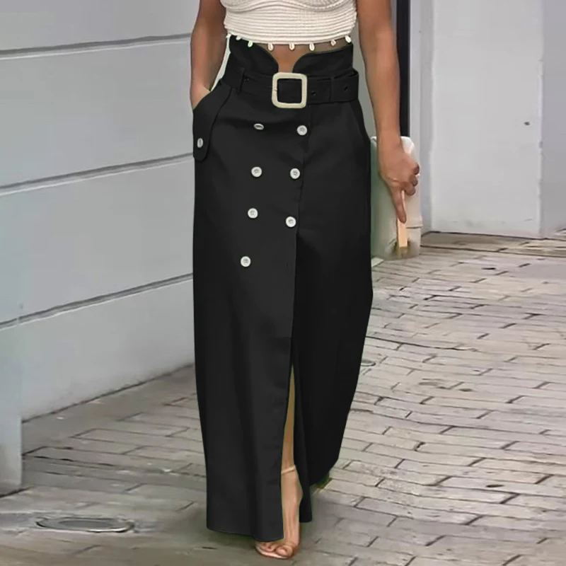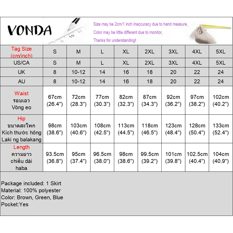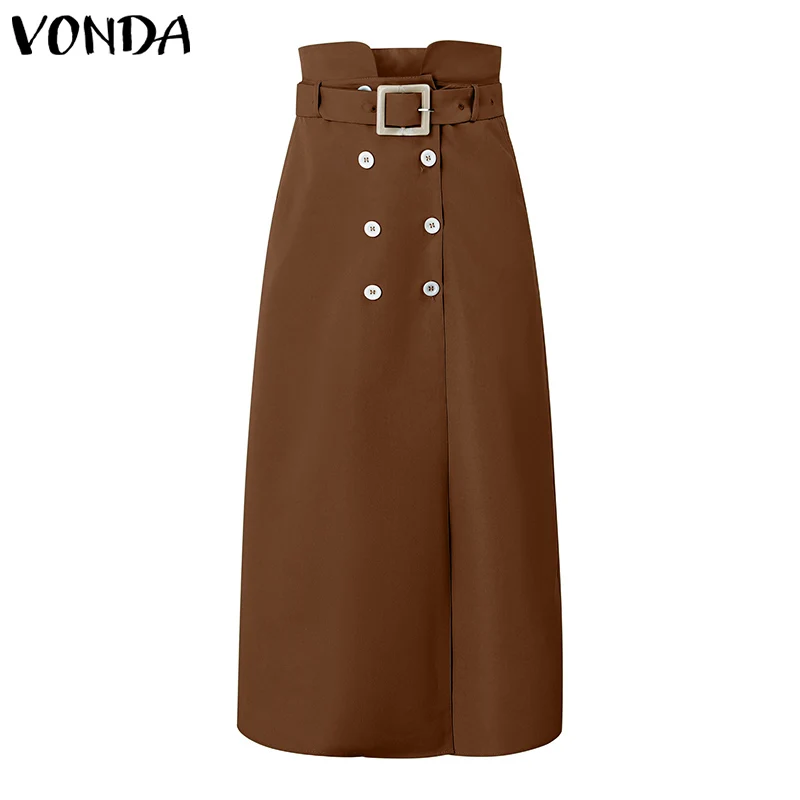 Vonda saias femininas elegantes 2025 casual cintura botão design fenda longa overskirts cor sólida senhora do escritório bottoms oversized