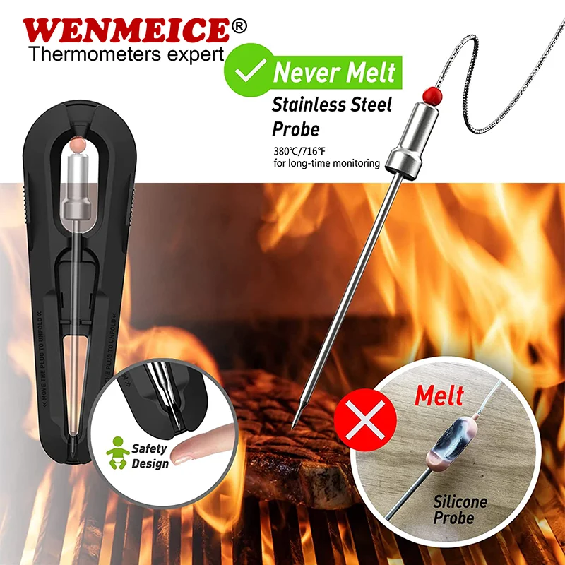 WENMEICE Sondas de termômetro digital de aço inoxidável aprimoradas para churrasqueira de carne Bluetooth Termômetro de cozinha para churrasco