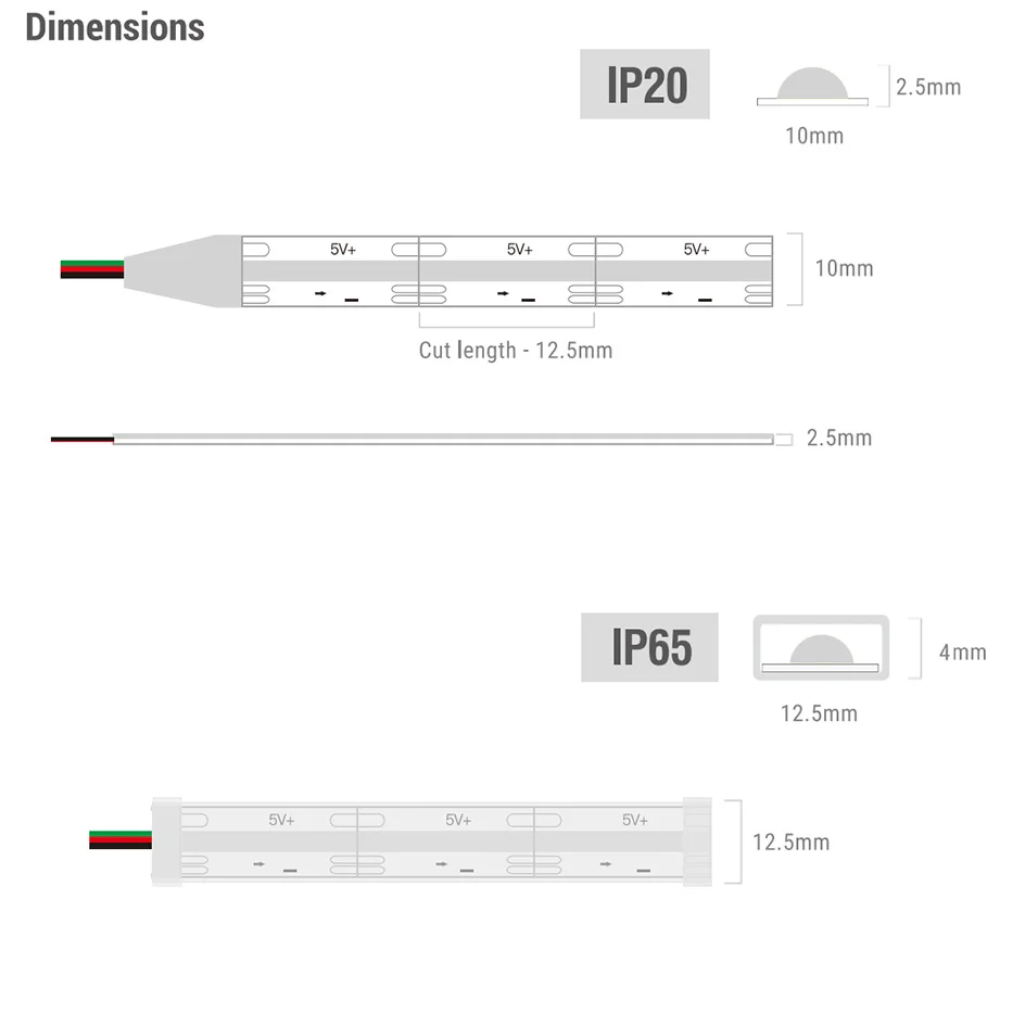 Largura da tira: 10 mm para IP20, 12 mm para IP65
