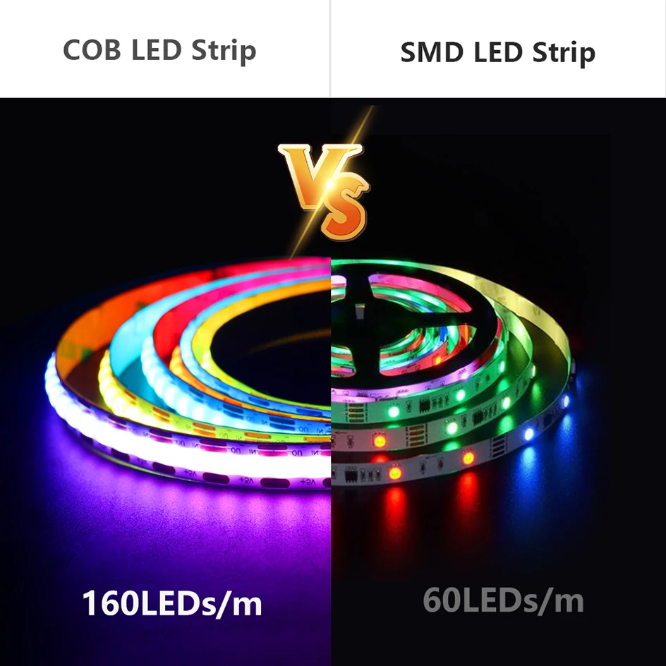 OCONA High Density 160 LEDs SPI RGB COB LED Strip Lights Fita Inteligente Endereçável Individualmente DC5V