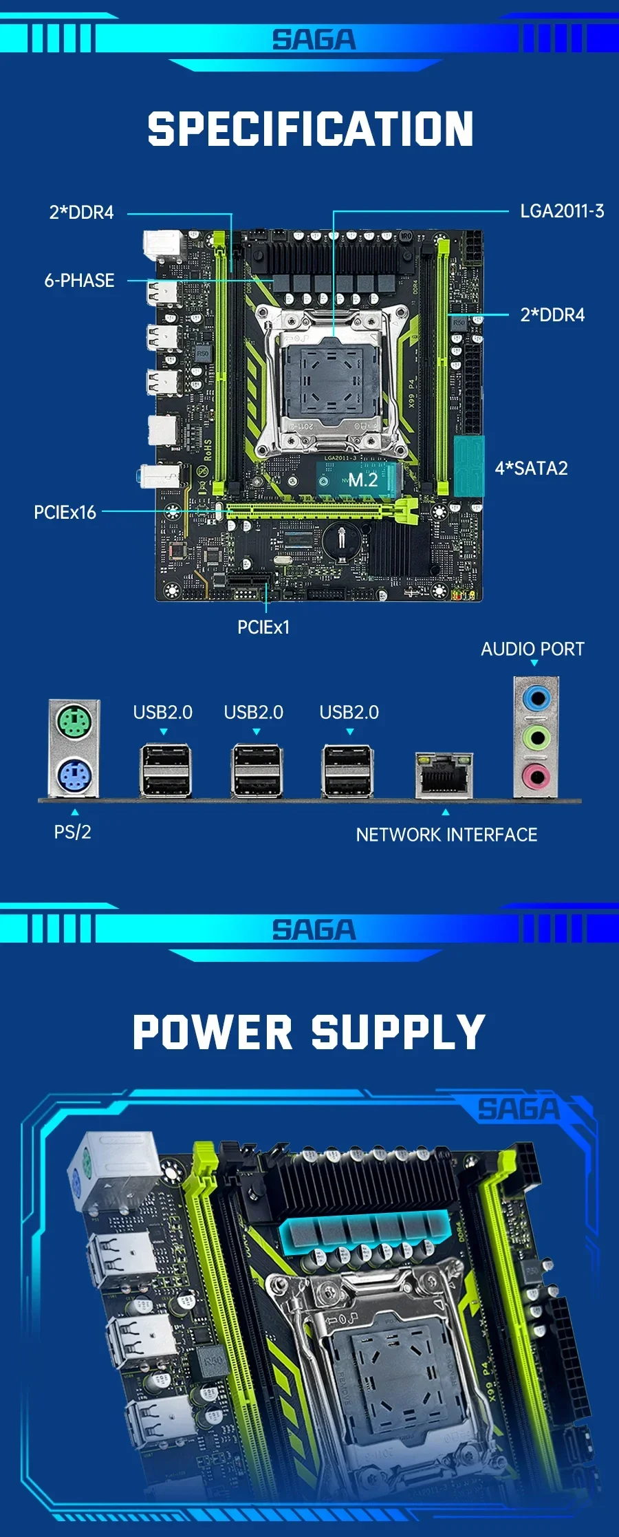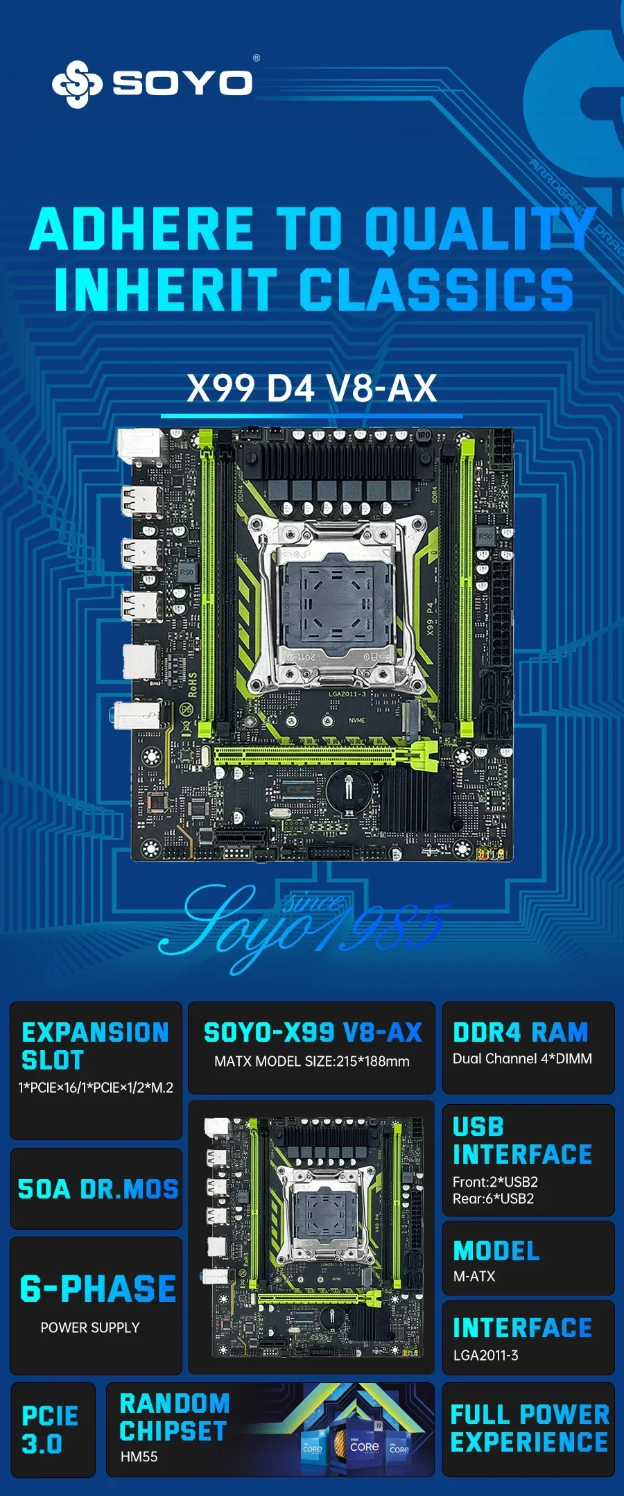 - > X99-8D4 soyo conjunto placa-mãe kit com intel LGA2011-3 xeon e5 2650 v4 cpu ddr4 16gb (1*16gb) 2133mhz memória ram nvme m.2 sata
