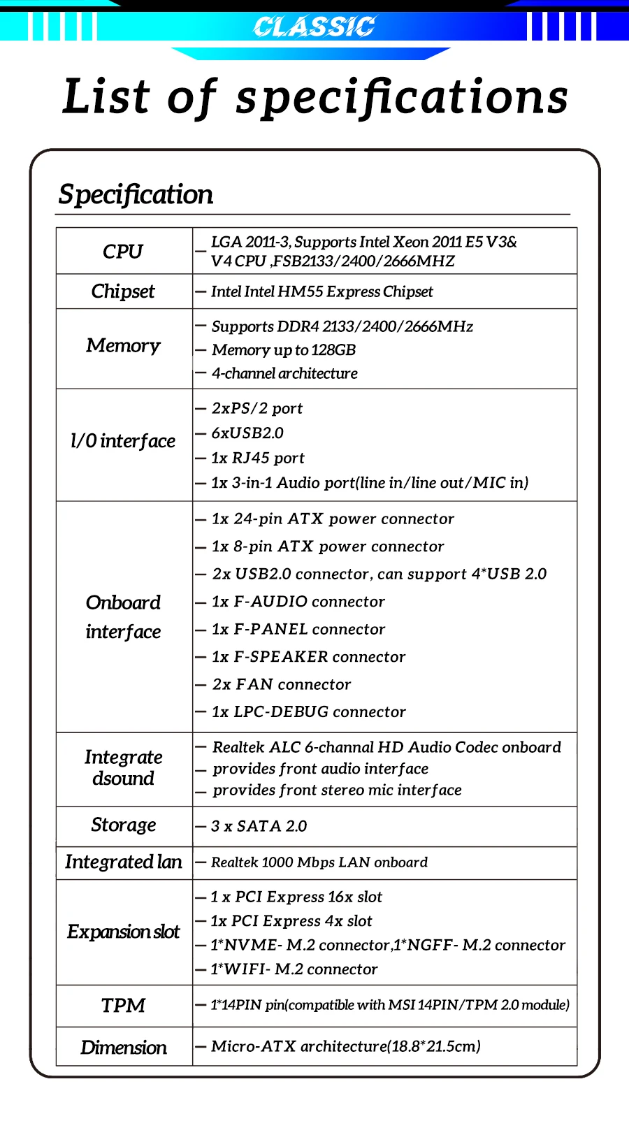 -1x slot WIFI M.2