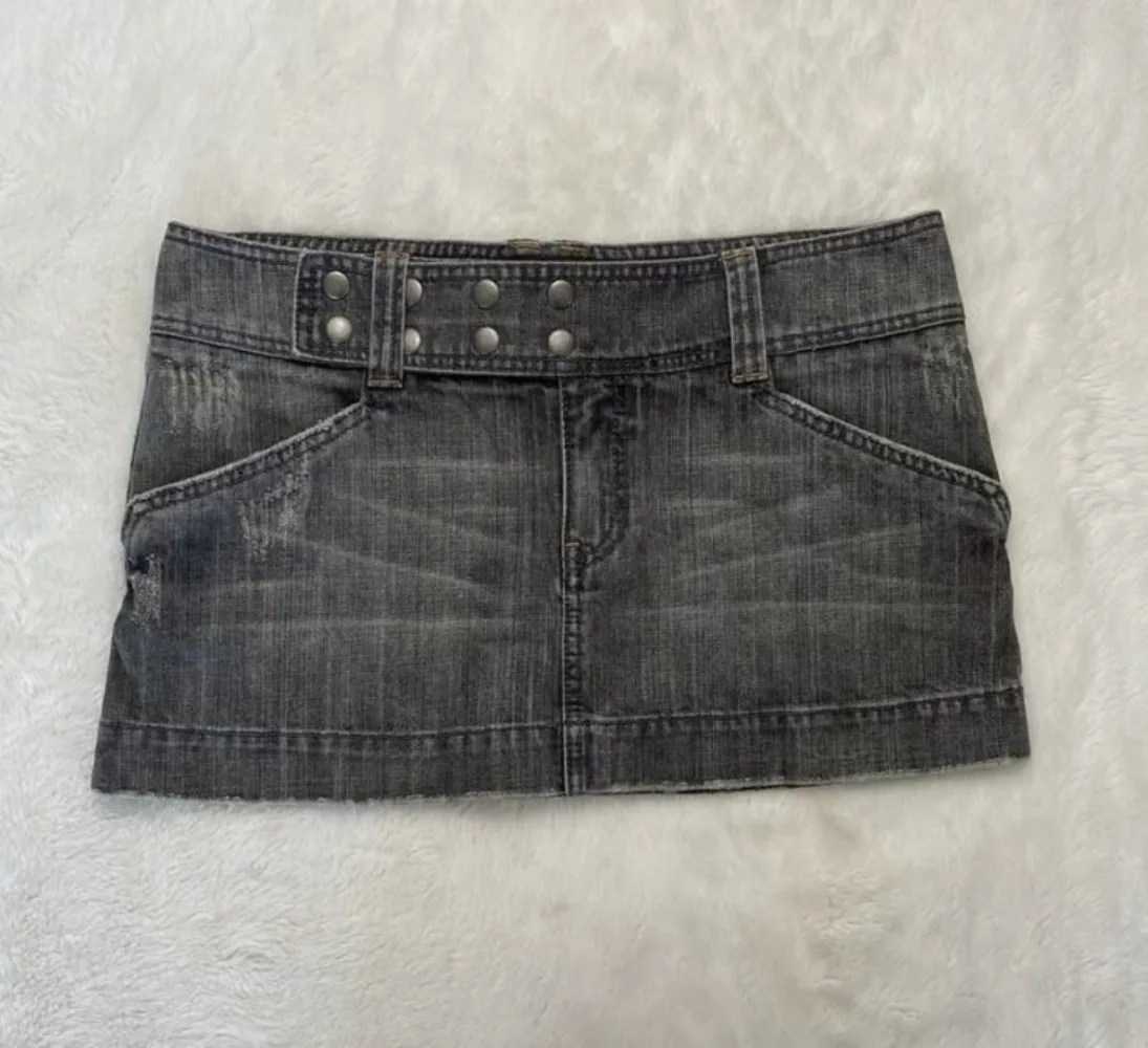 Y2k cintura ajustável mini saia harajuku menina quente cor sólida retro cinza denim saia feminina gótico magro quadril cintura baixa saia curta