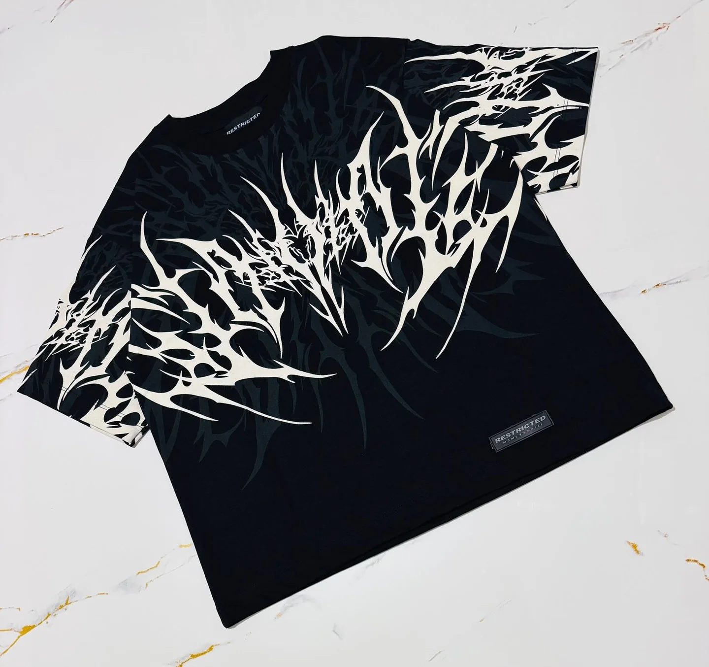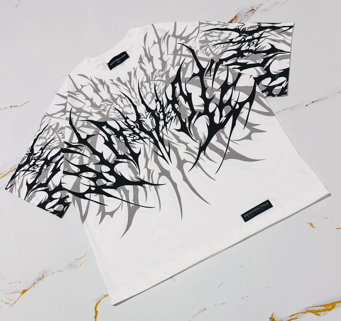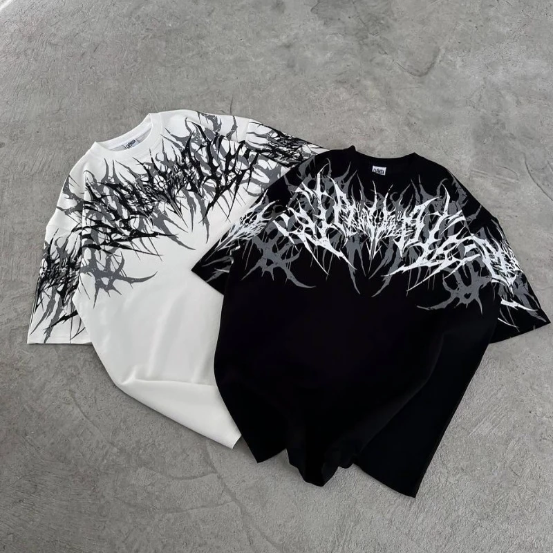Y2k cyberpunk gótico t camisa edgy espinho textura impressão puro algodão streetwear moda gráfico camiseta estilo urbano ajuste confortável