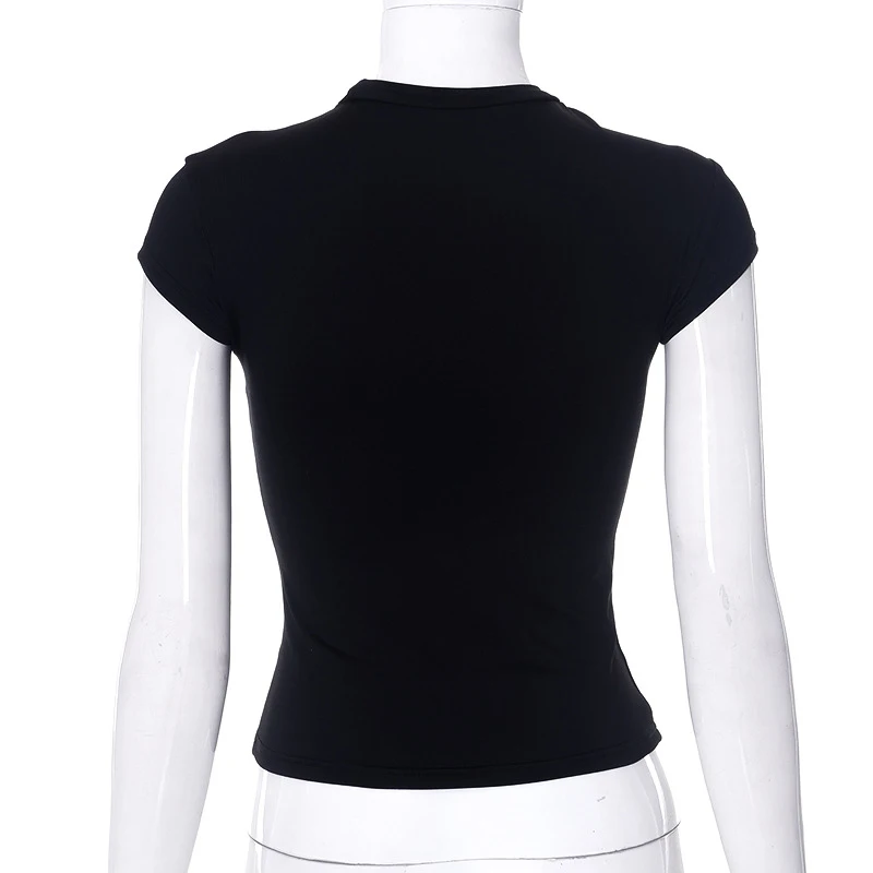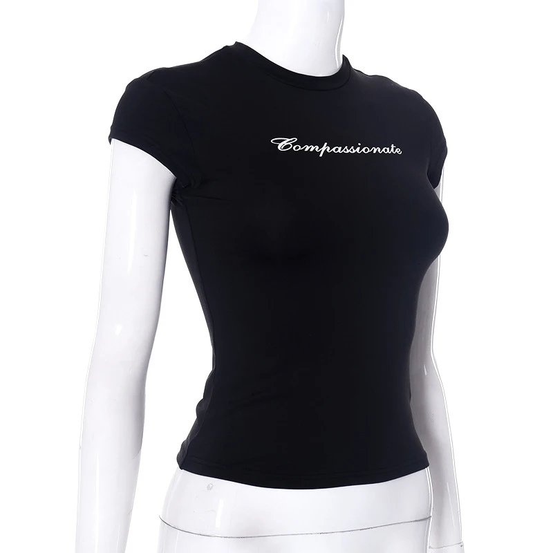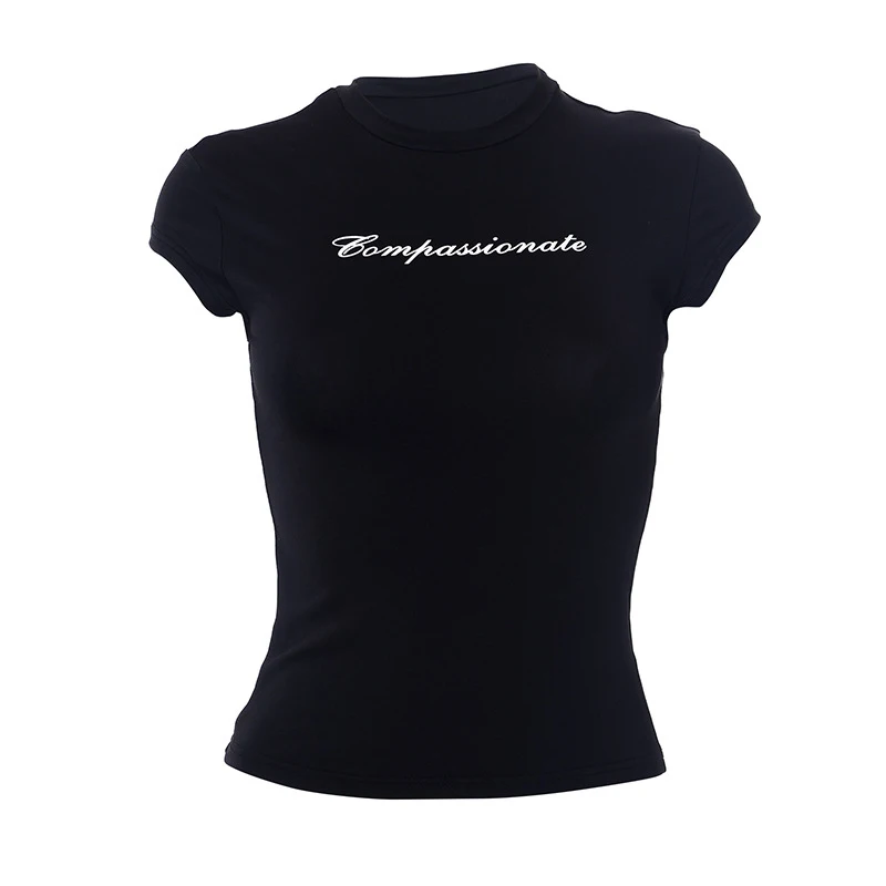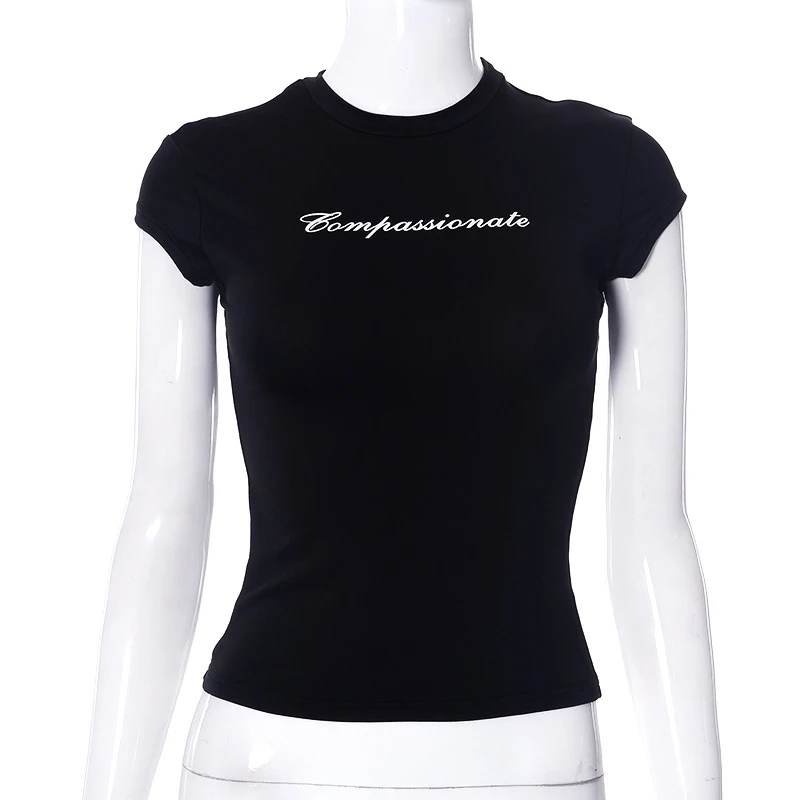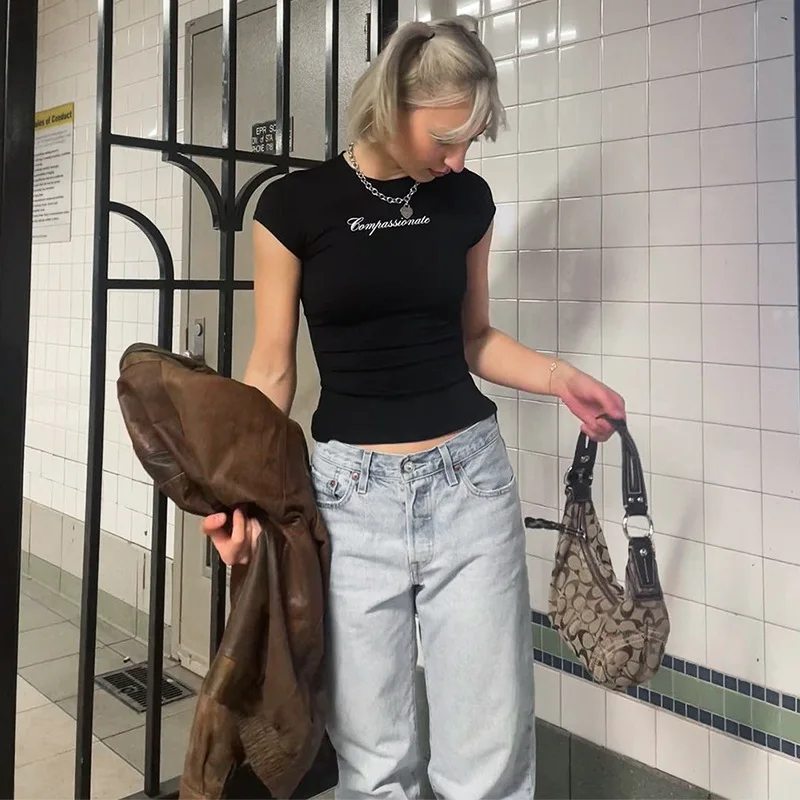 Y2k streetwear colheita topos carta impressão preto camisetas de manga curta gráficos t camisa das mulheres 2024