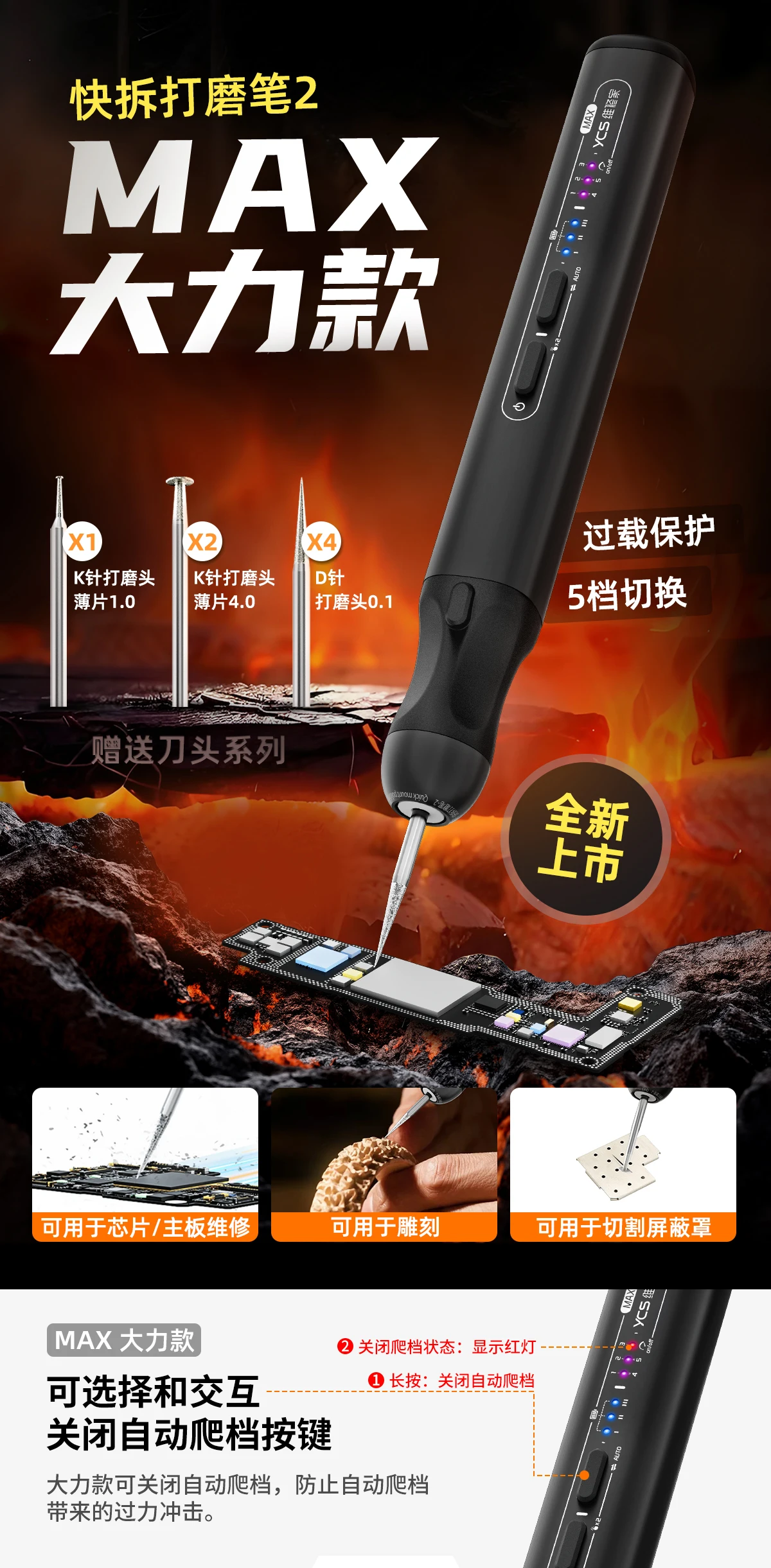 Ycs 2nd e dm460k caneta polonês elétrica carregável para reparo de tela pcb de telefone broca profissional moagem desmontagem ferramentas manuais