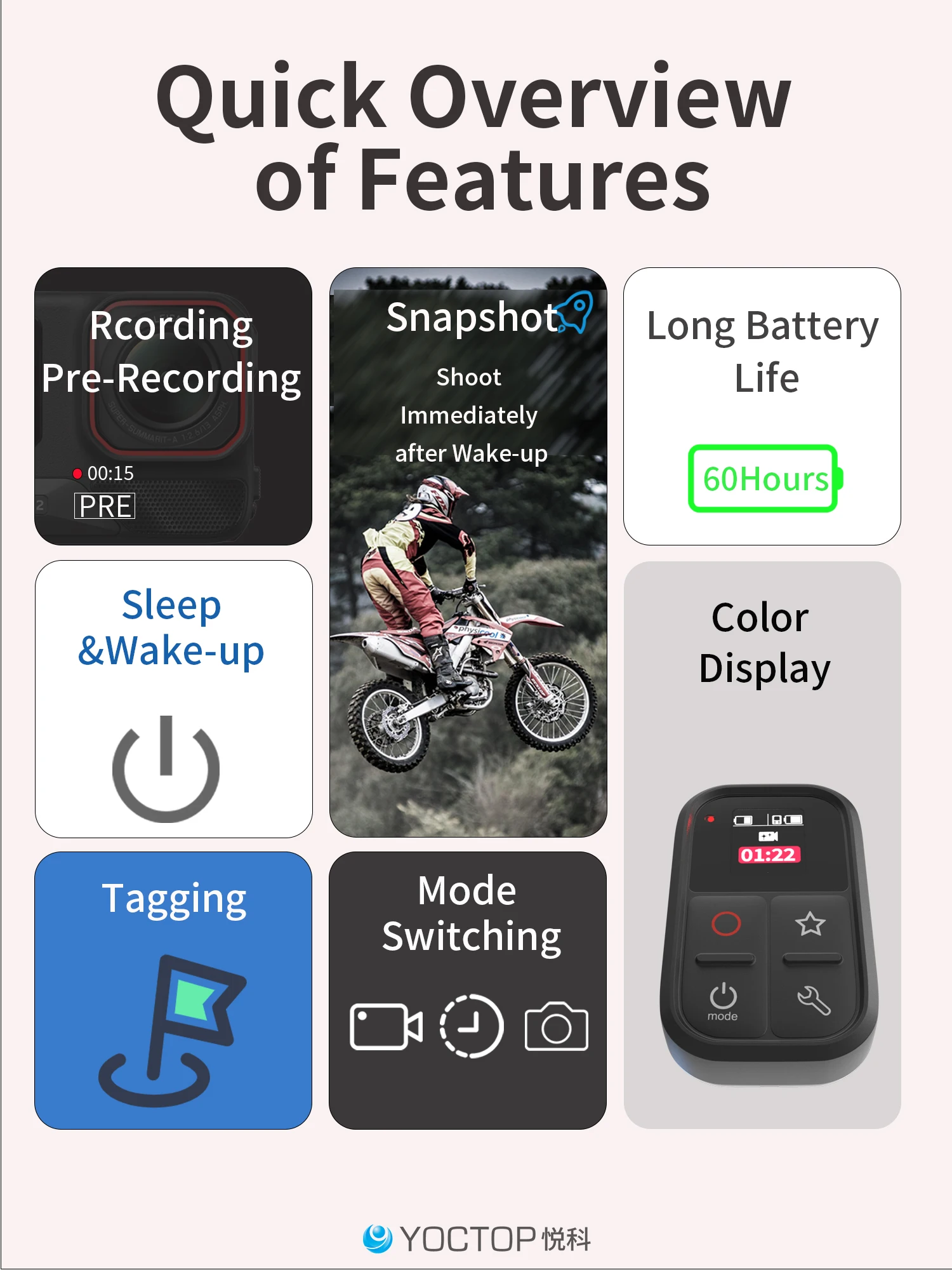 - > YOCTOP é adequado para câmeras esportivas Insta360 X3, X4, X5, GO 3S, Ace Pro2 Acessórios à prova d'água com controle remoto Bluetooth